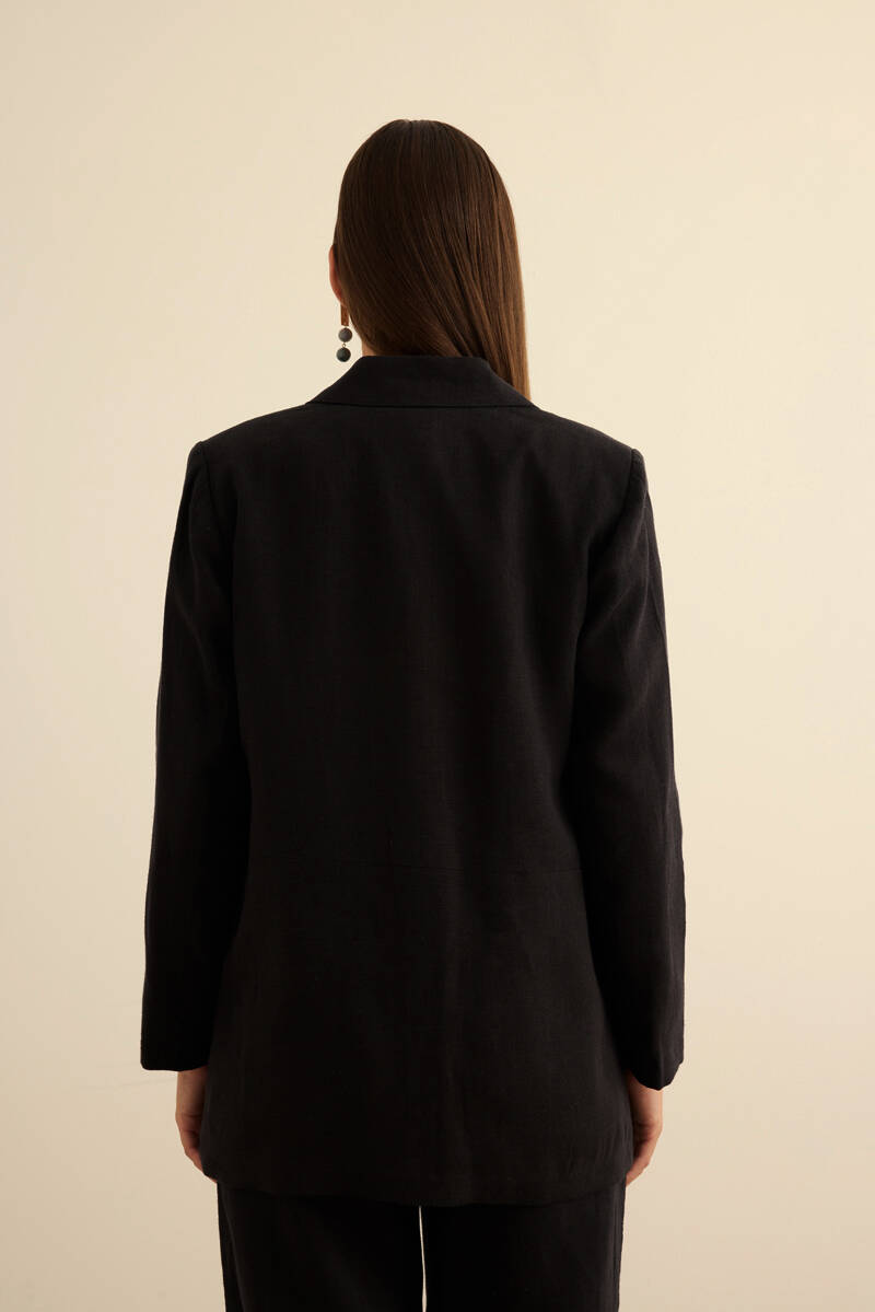 Siyah Taş Yapıştırmalı Dokuma Klasik Ceket