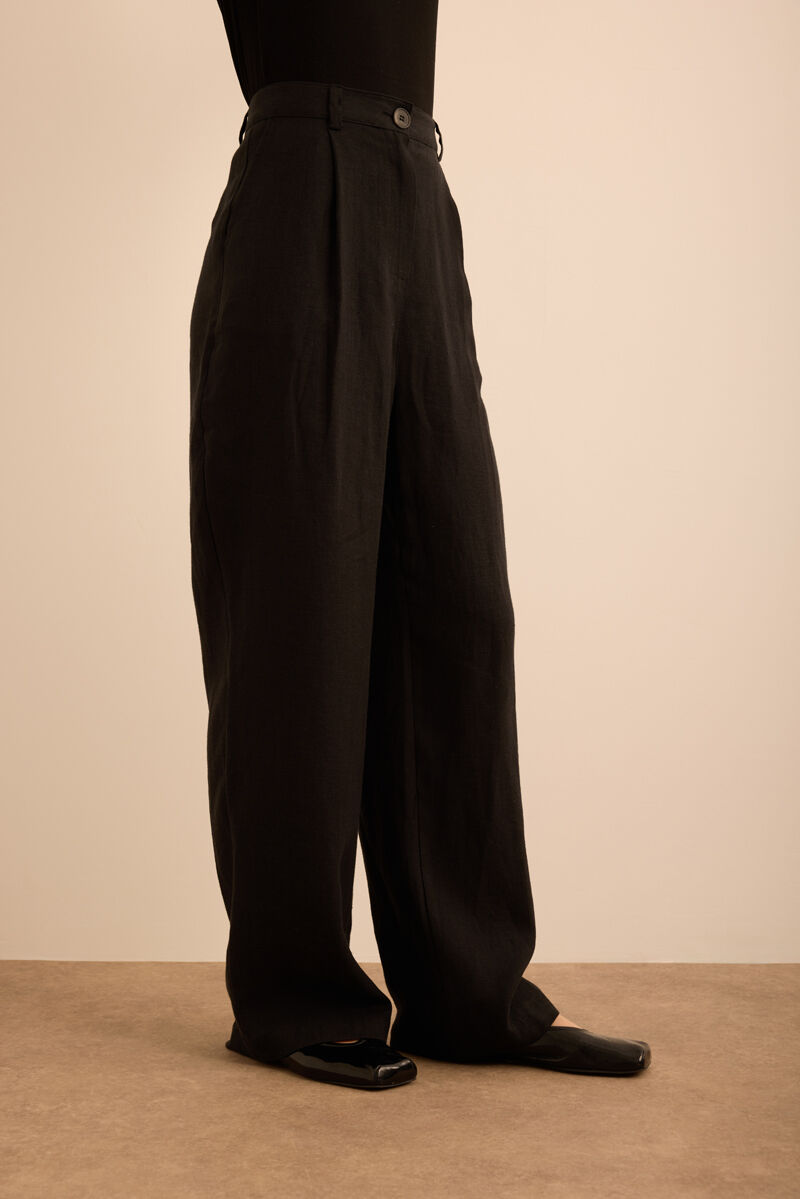 Siyah Beli ve Paçası Lastikli Balon Form Keten Pantolon