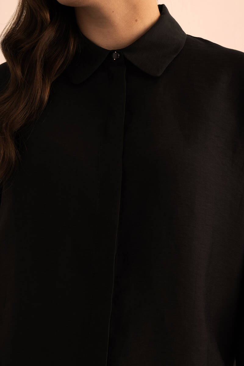 Siyah Tencel Keten Bluz