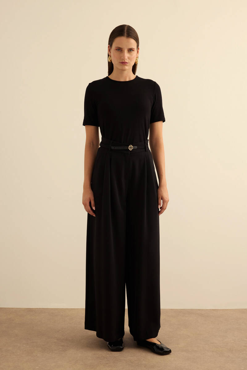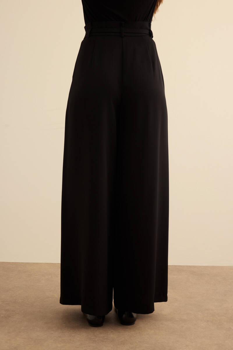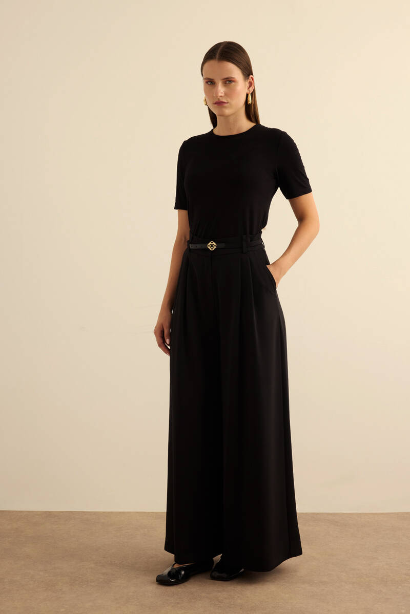 Siyah Beli Lastik Detaylı Dökümlü Pantolon Etek