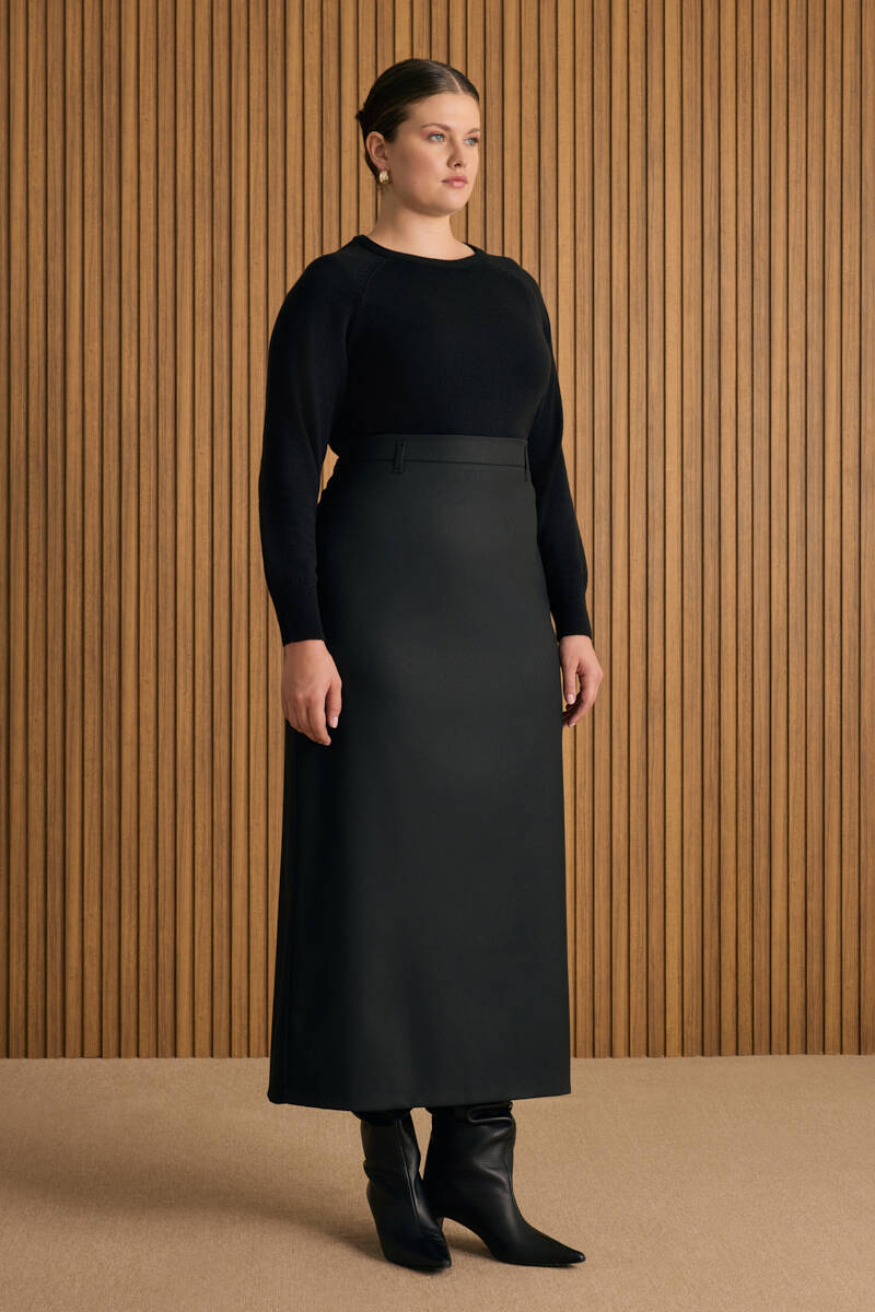 Siyah Örme Uzun Etek