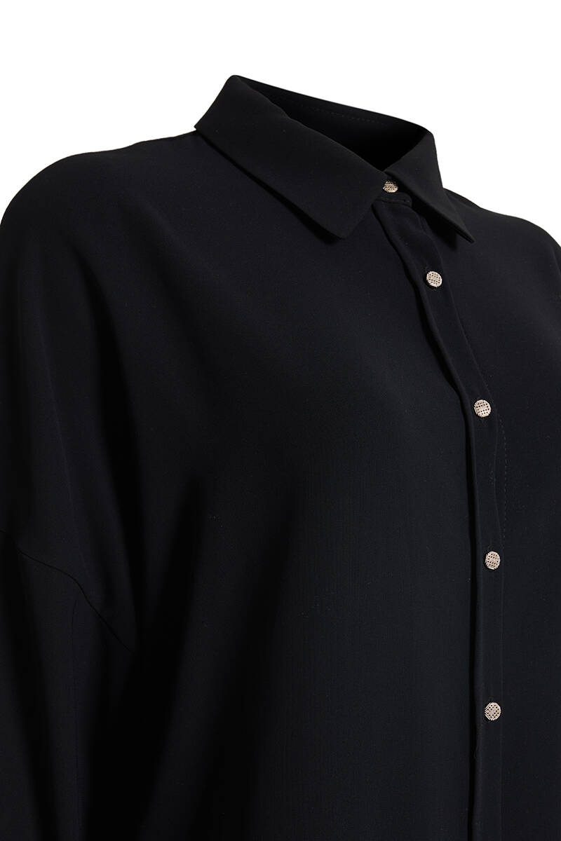 Siyah Gül Broşlu Bluz