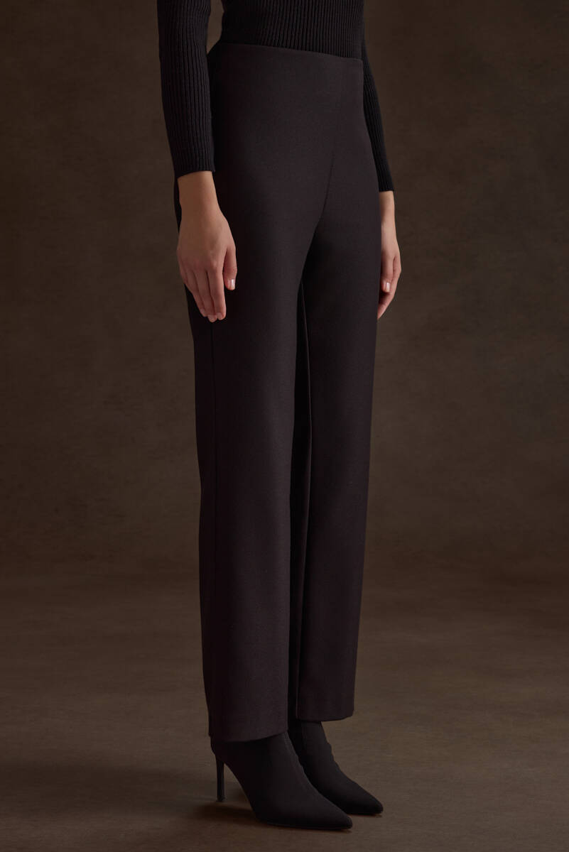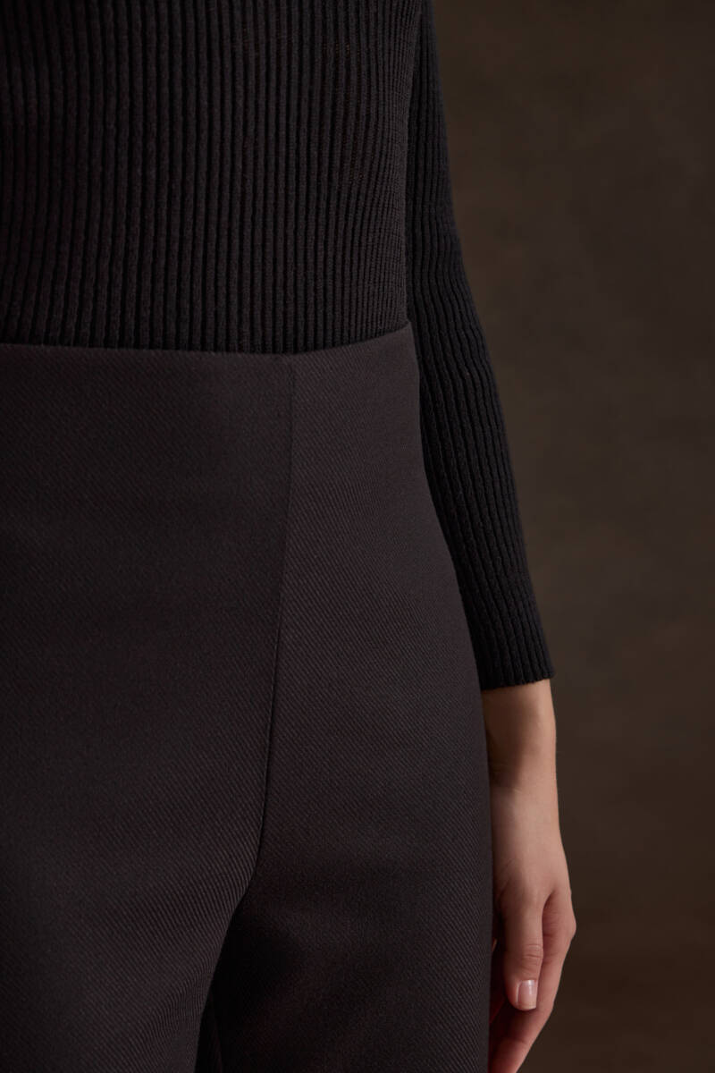Siyah Belden Metal Toka Bağlama Detaylı Dokuma Pantolon