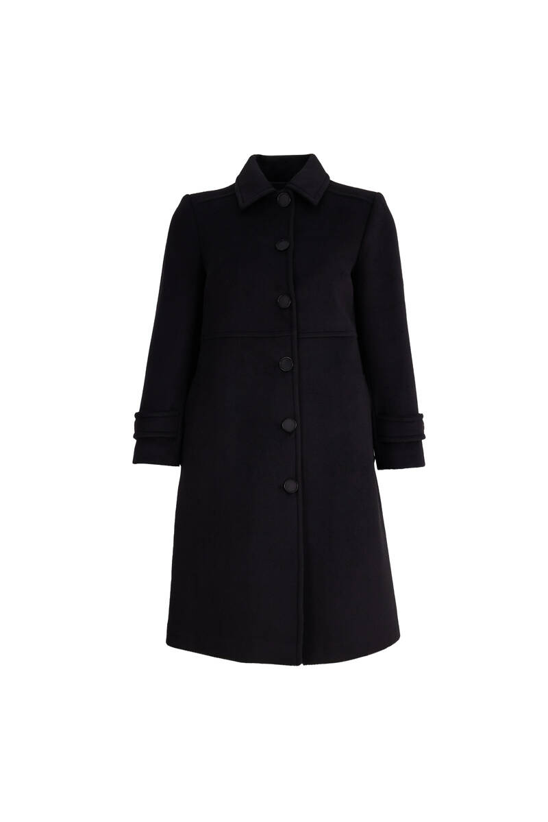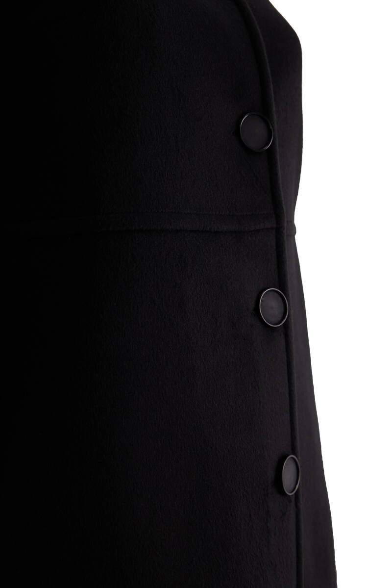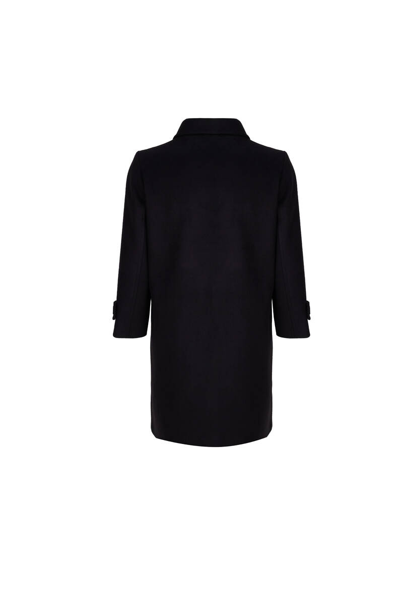 Siyah Kolları Apoletli Kaşe Kaban