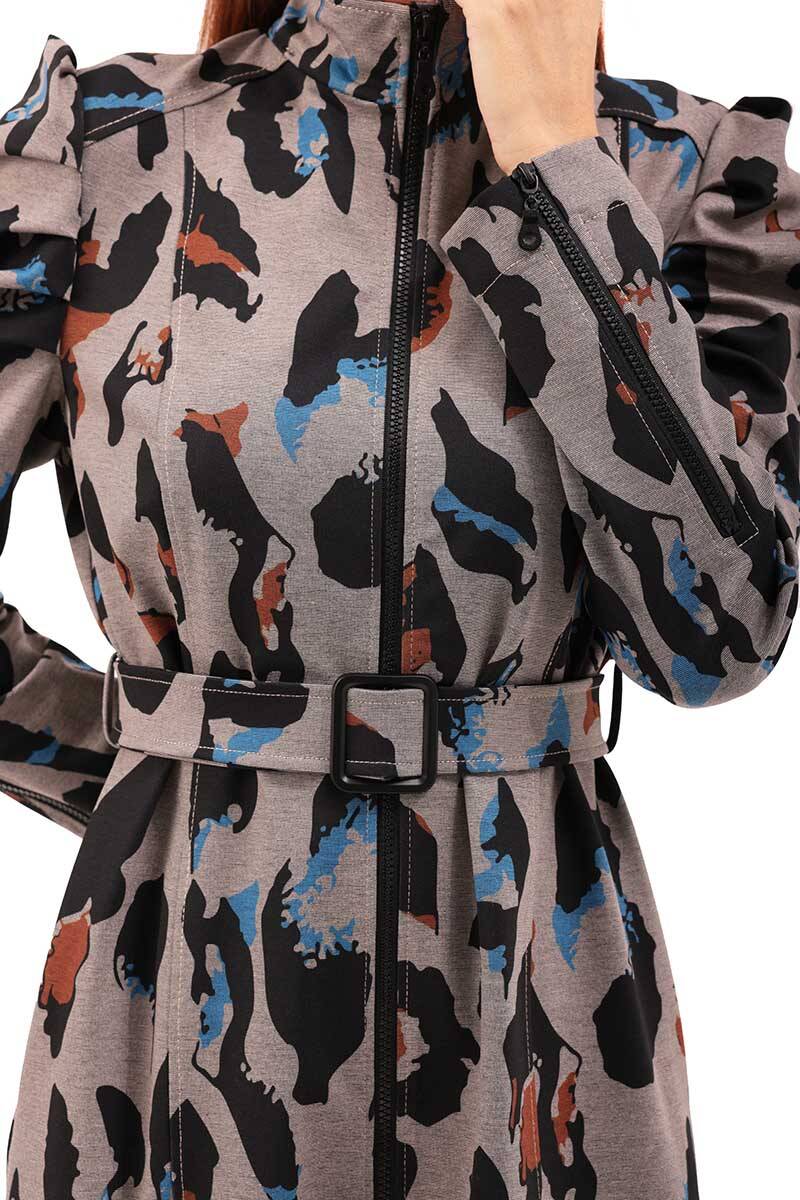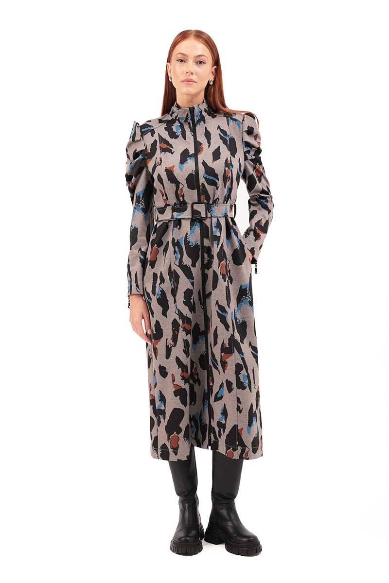 Siyah Kolları Detaylı Desenli Kap