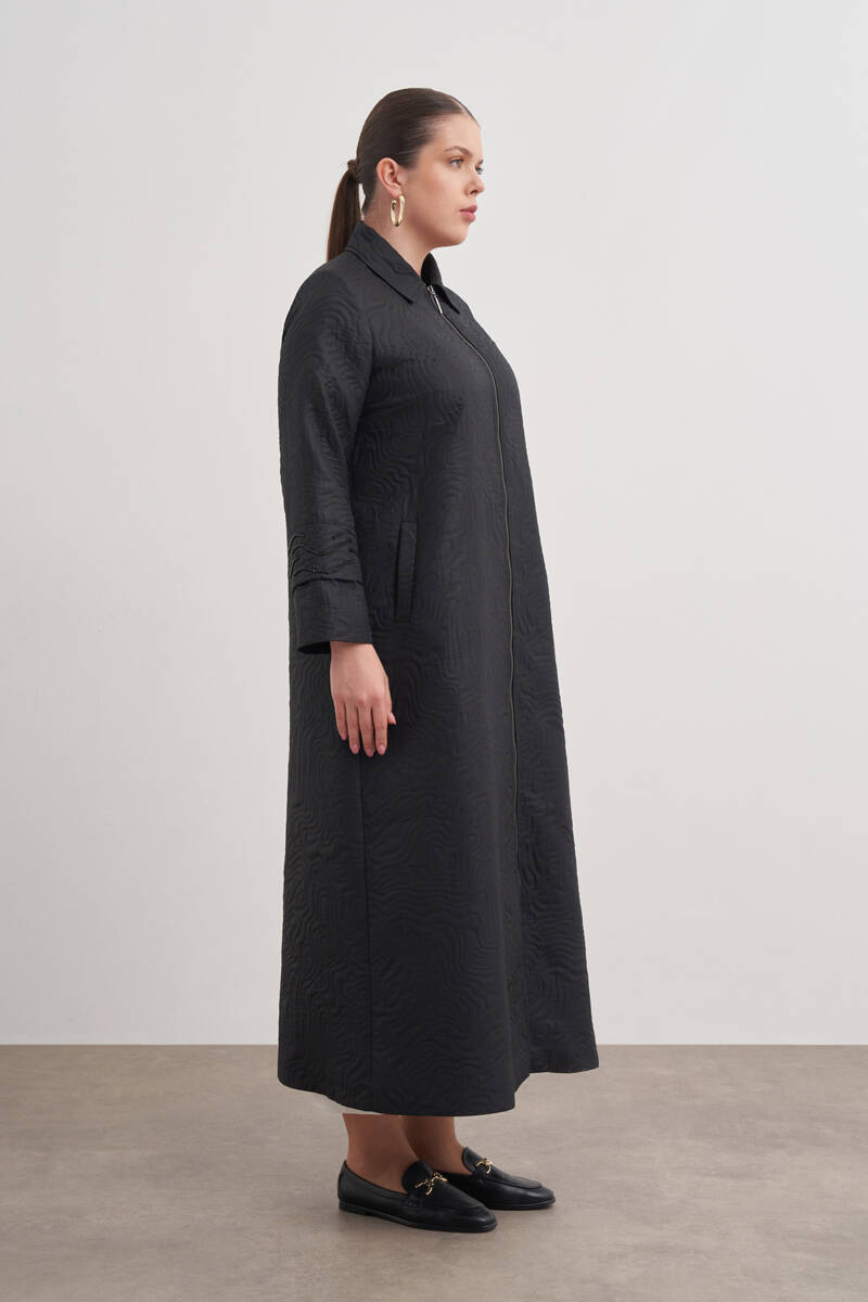 Siyah Kolları Detaylı Fermuarlı Pardösü