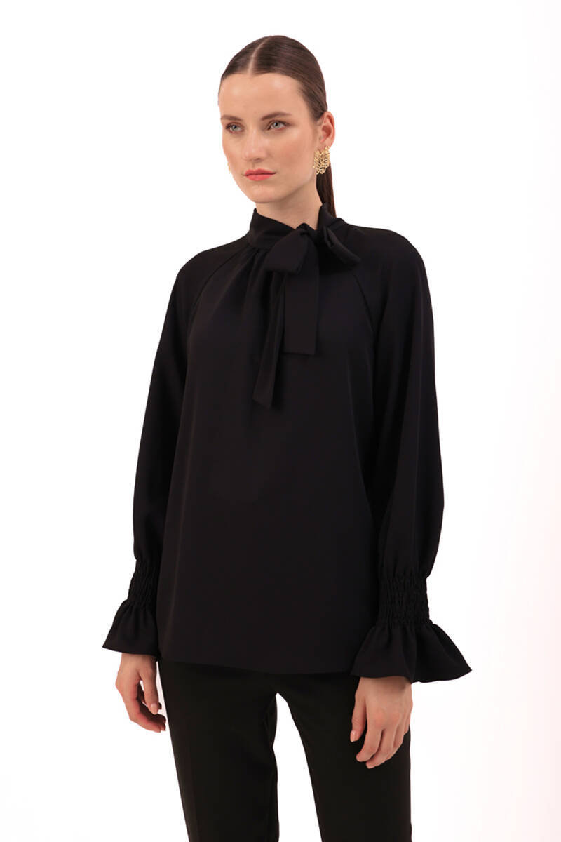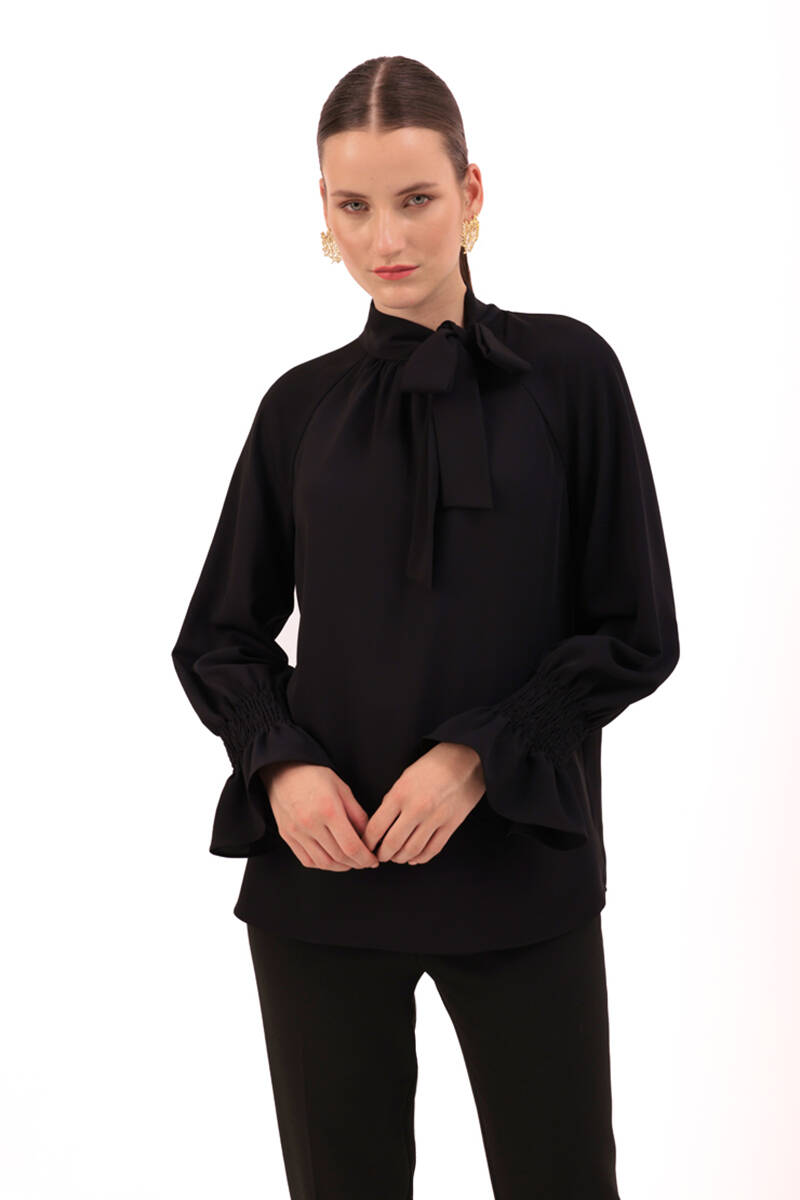 Antrasit Yaka İşlemeli Çizgili Bluz