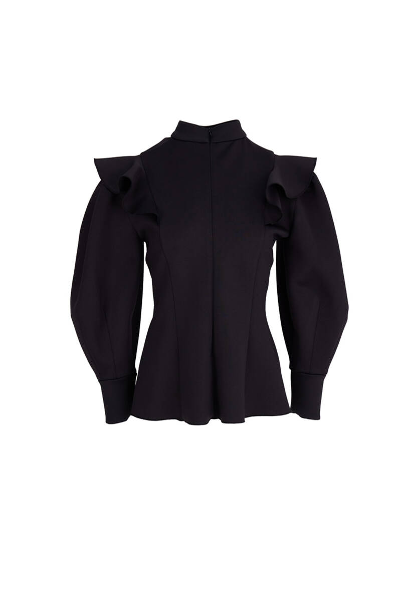 Antrasit Yaka İşlemeli Çizgili Bluz