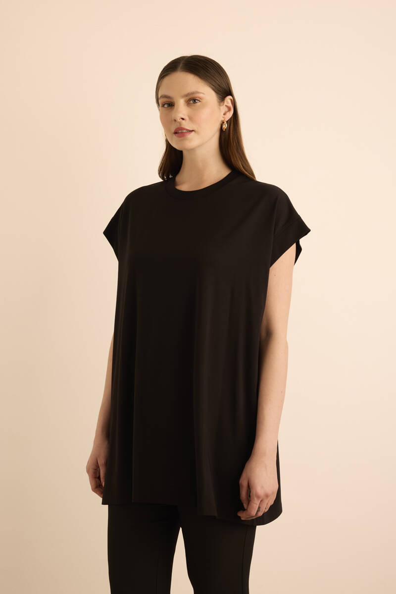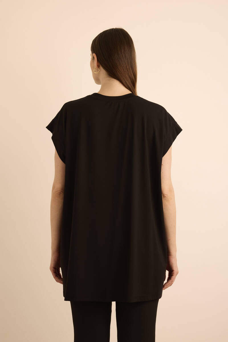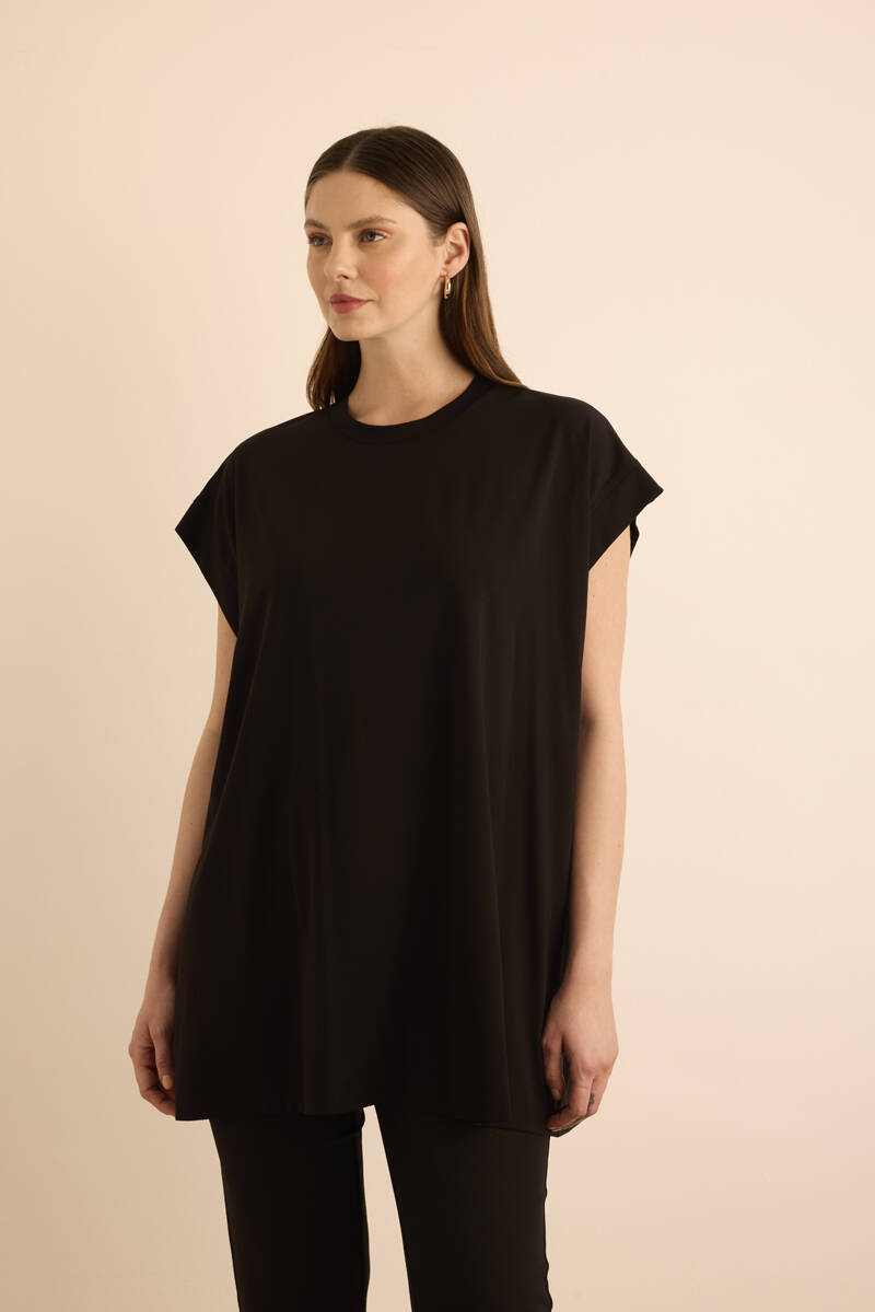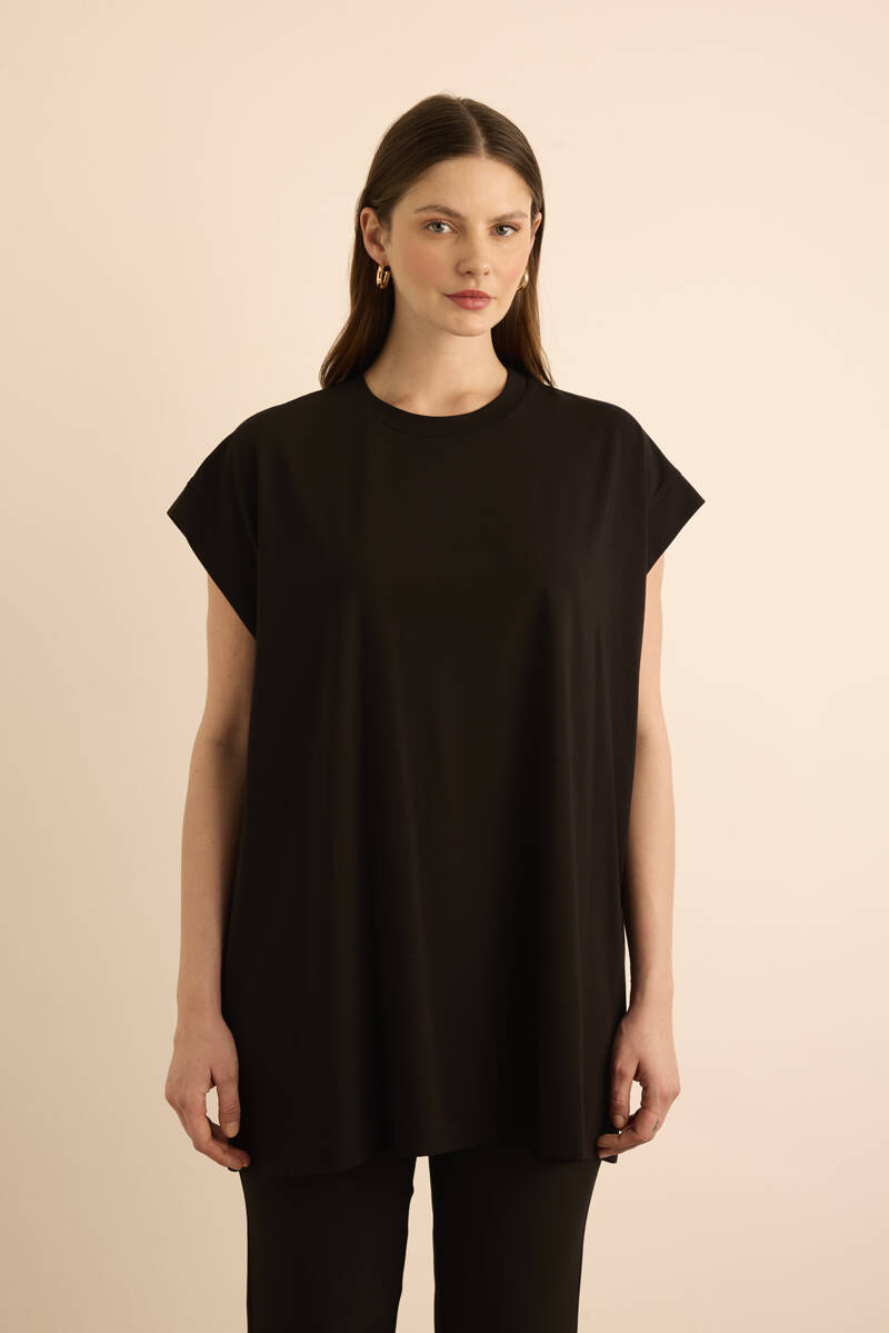 Siyah Kolu Kup Detaylı Örme Kolsuz Bluz