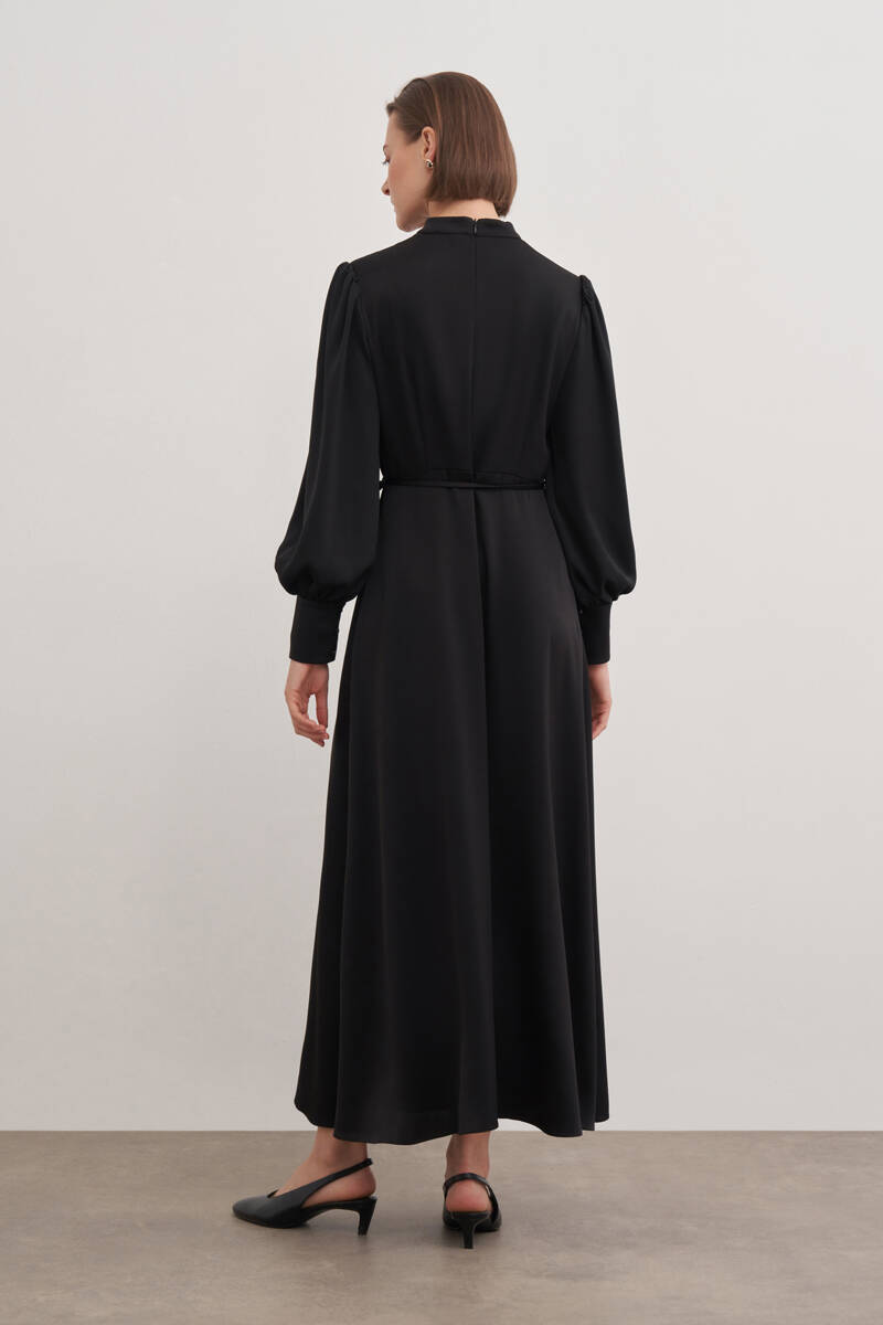 Siyah Doğal Dokulu Kumaş Gömlek Elbise