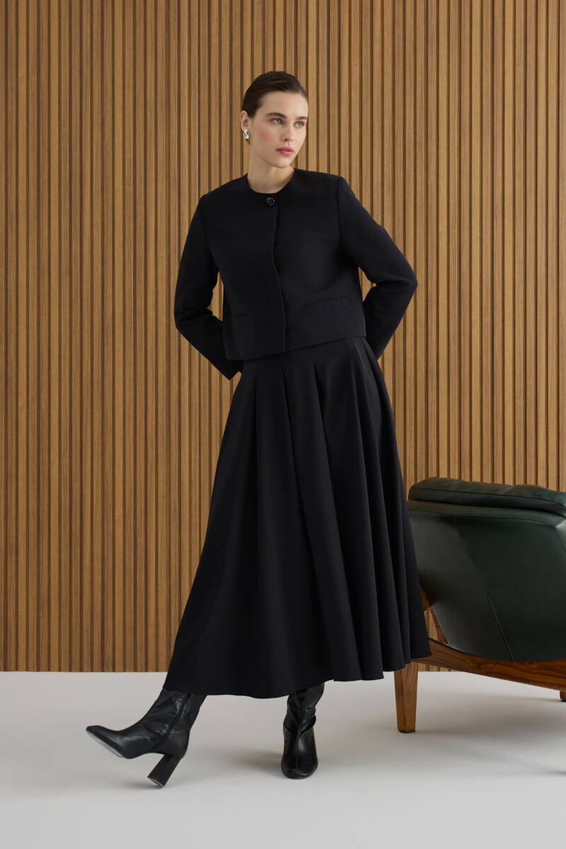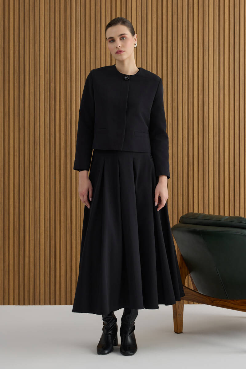 Siyah Koton Pileli Etek