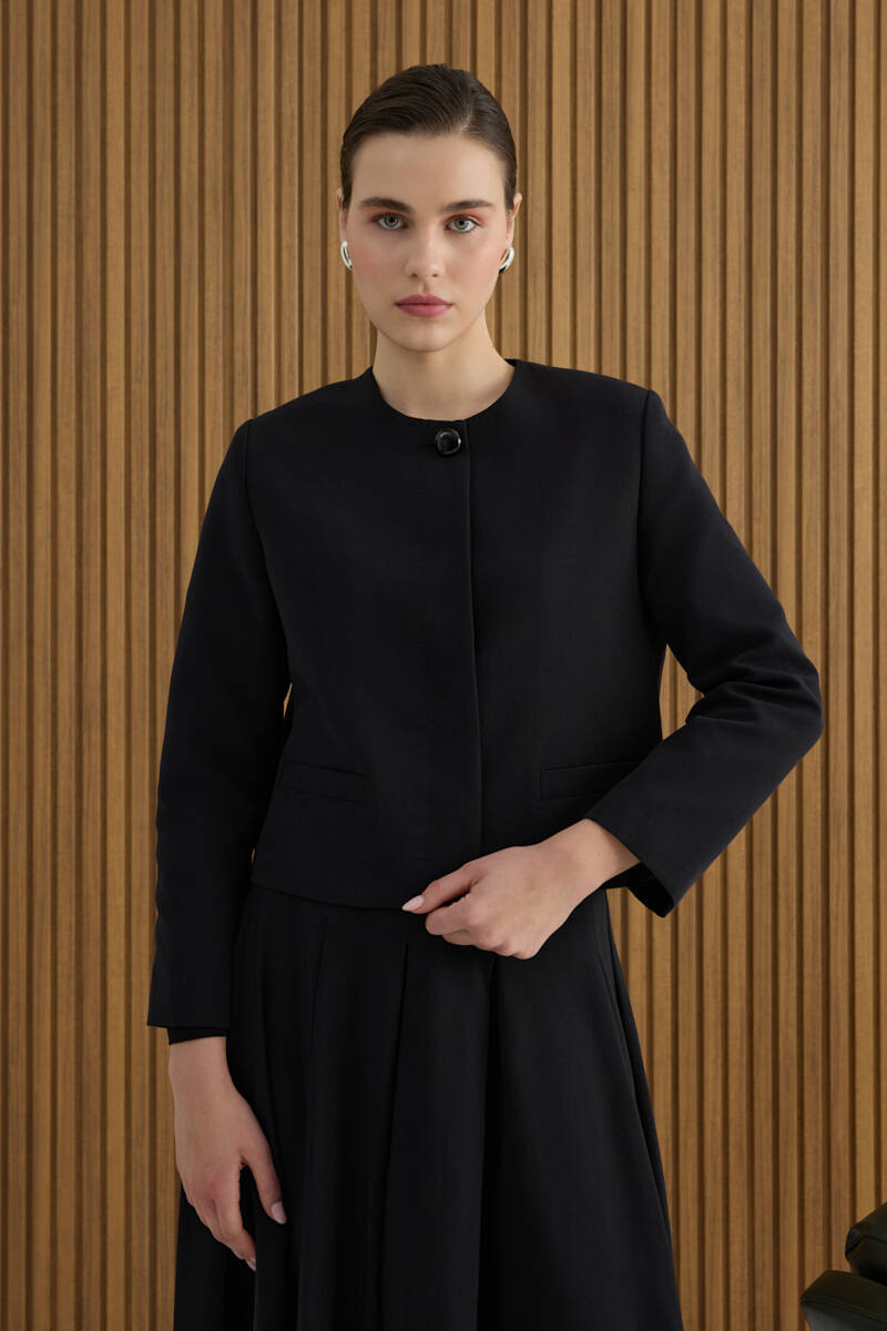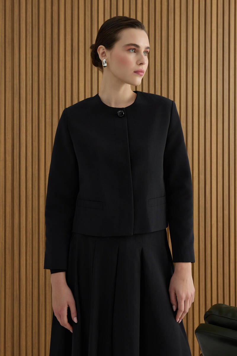Siyah Koton Kısa Ceket