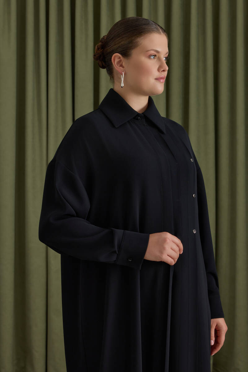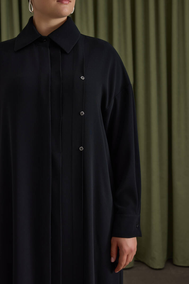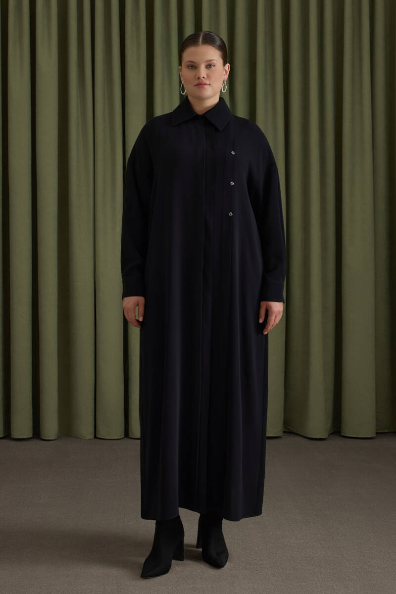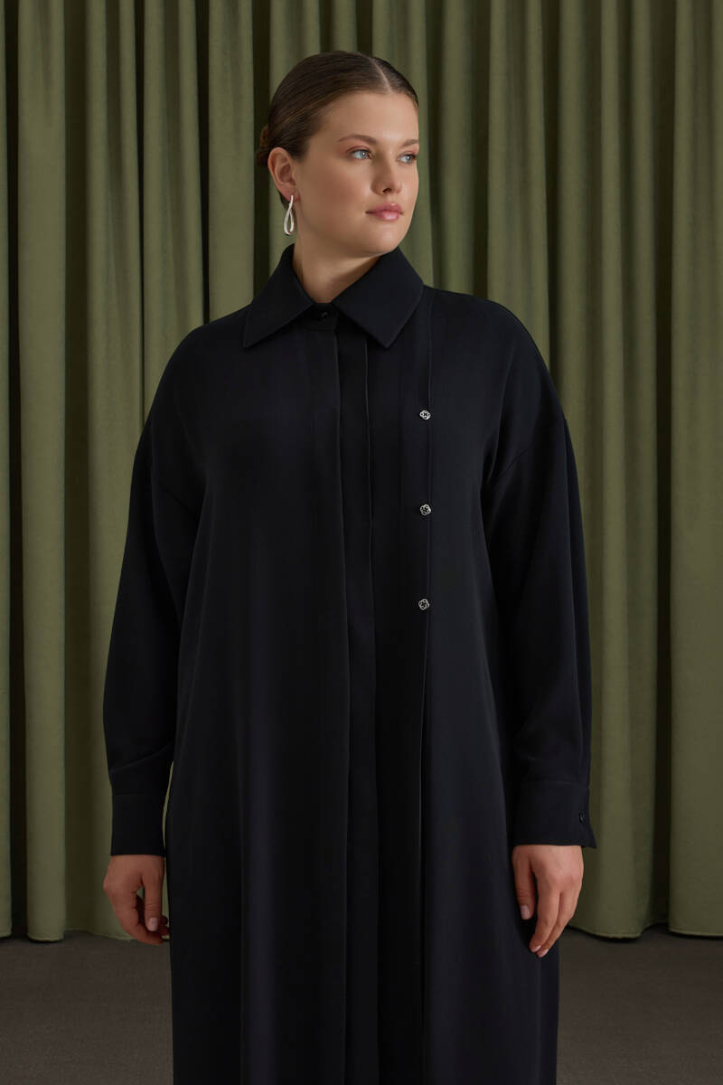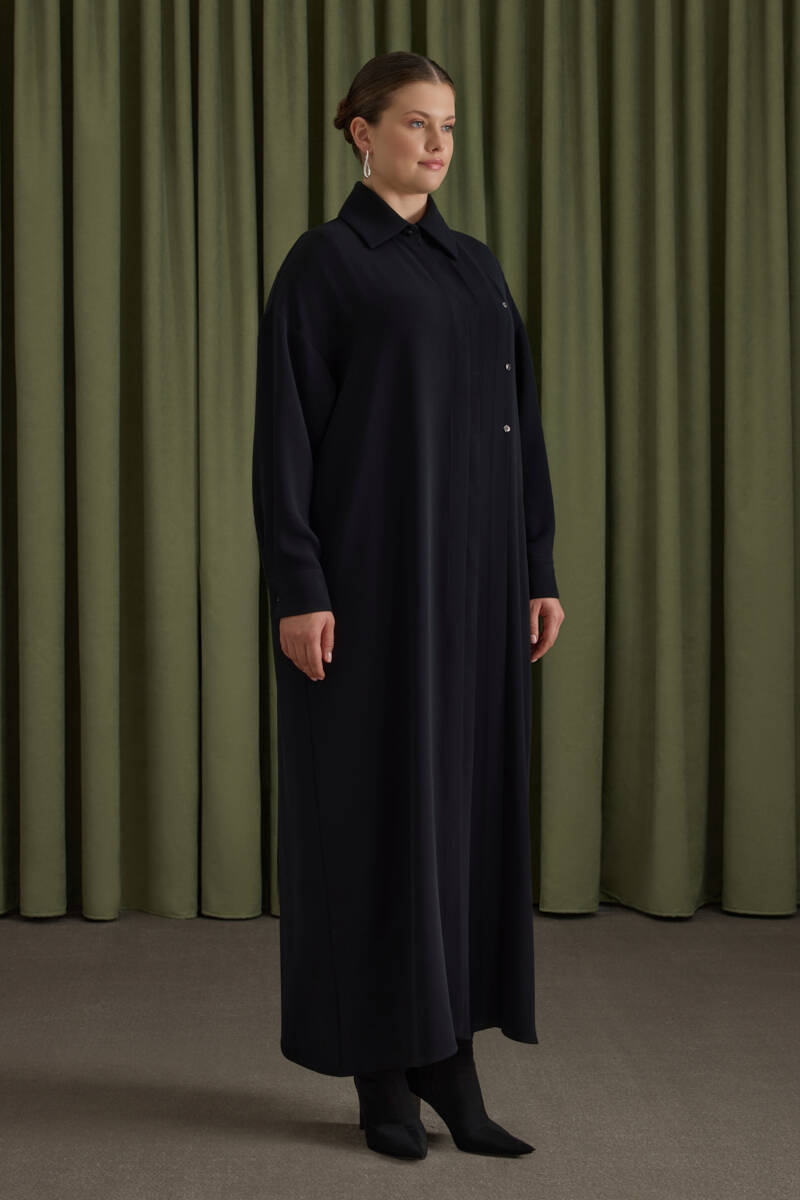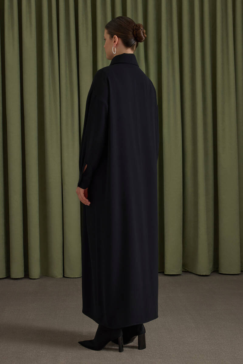 Lacivert Tencel Cotton Gömlek Elbise