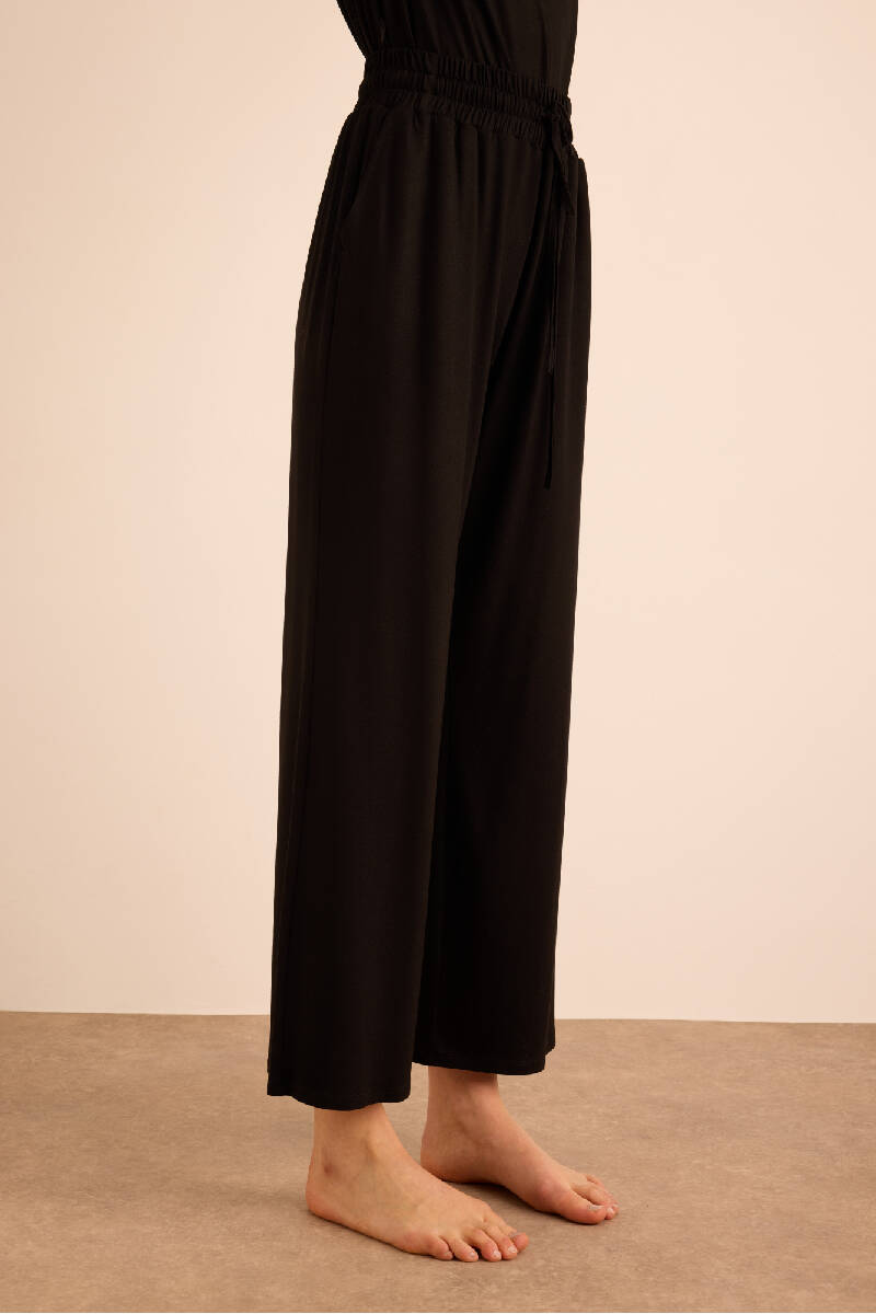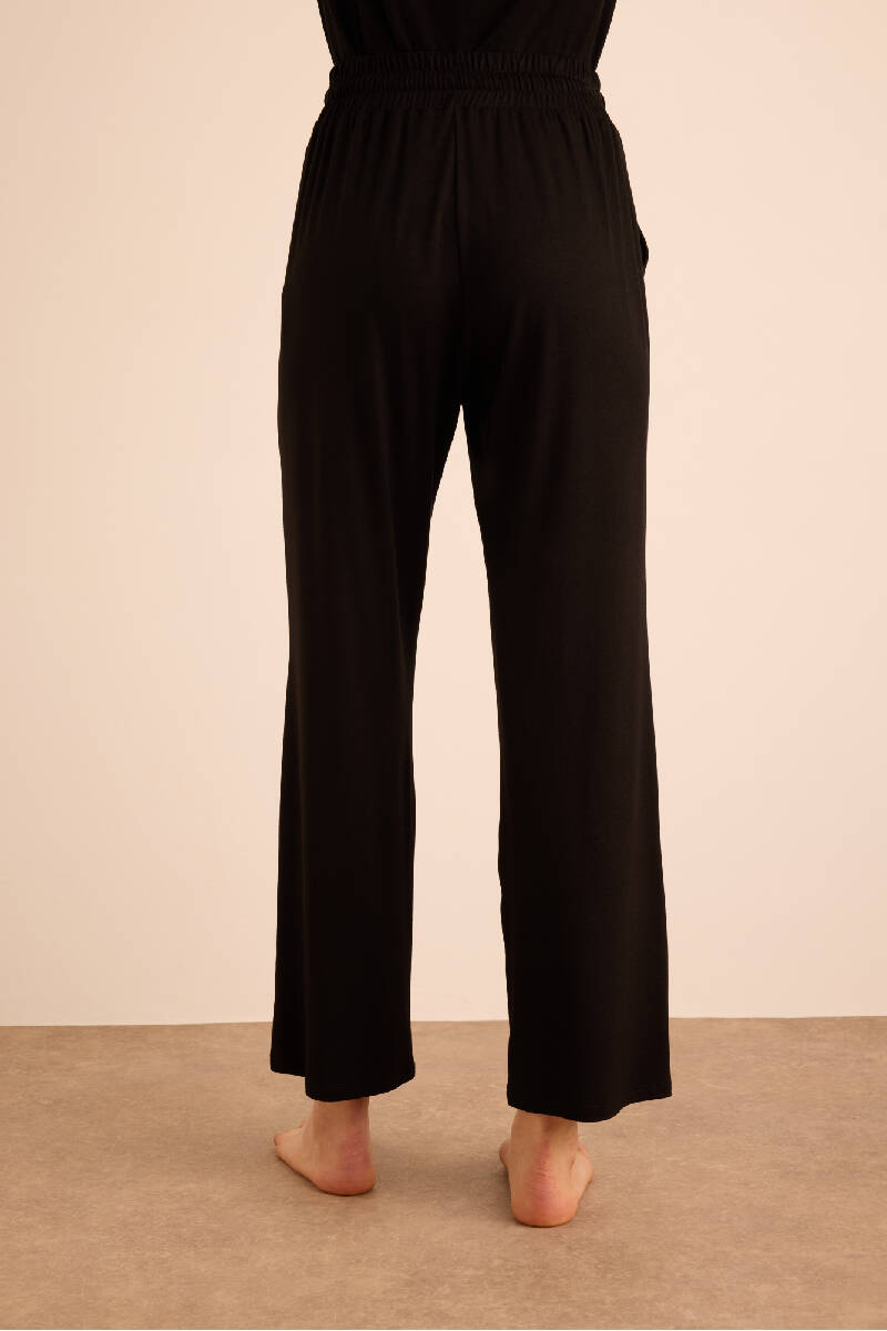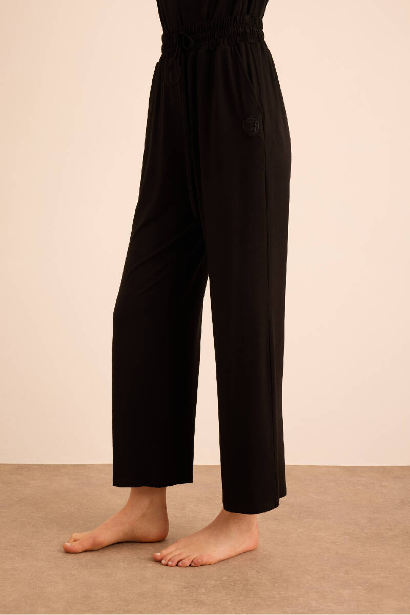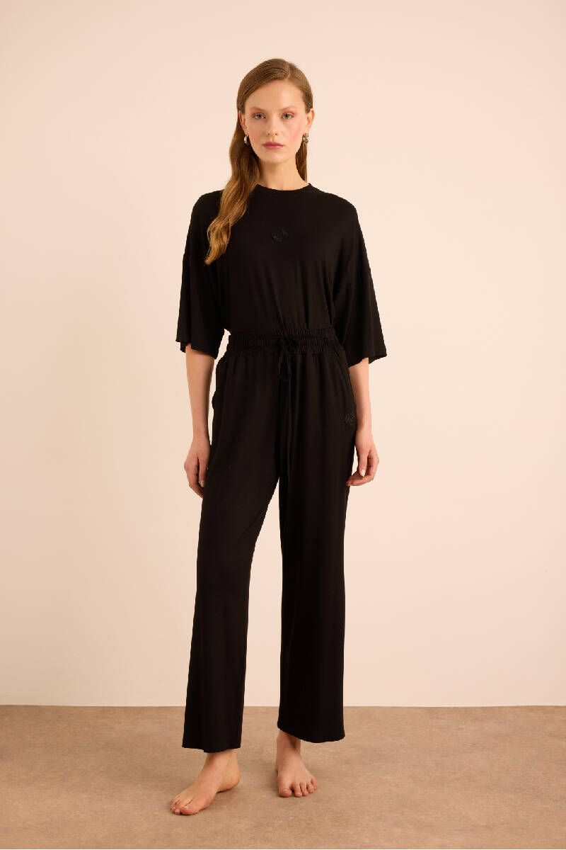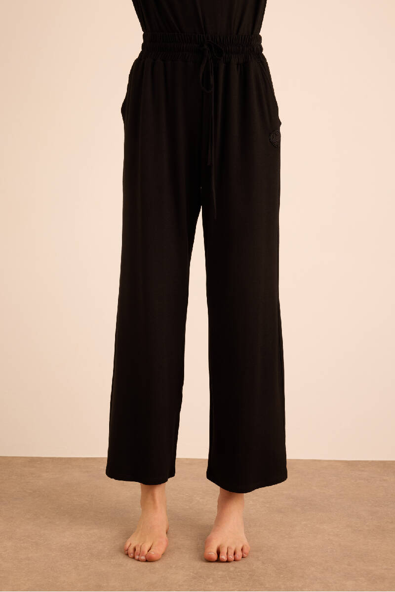 Siyah Koza Nakış Logolu Basic Viscon Örme Eşofman Altı