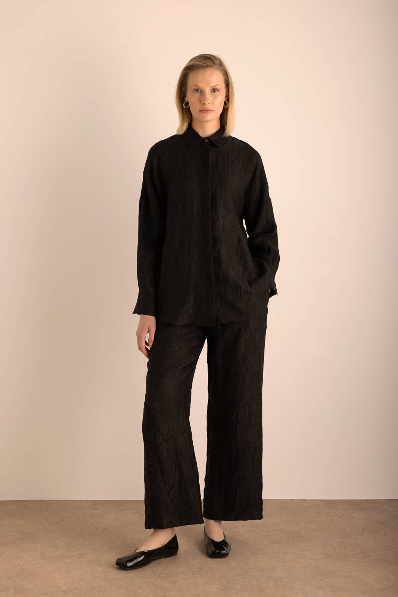 Siyah Kraş Efektli Keten Gömlek