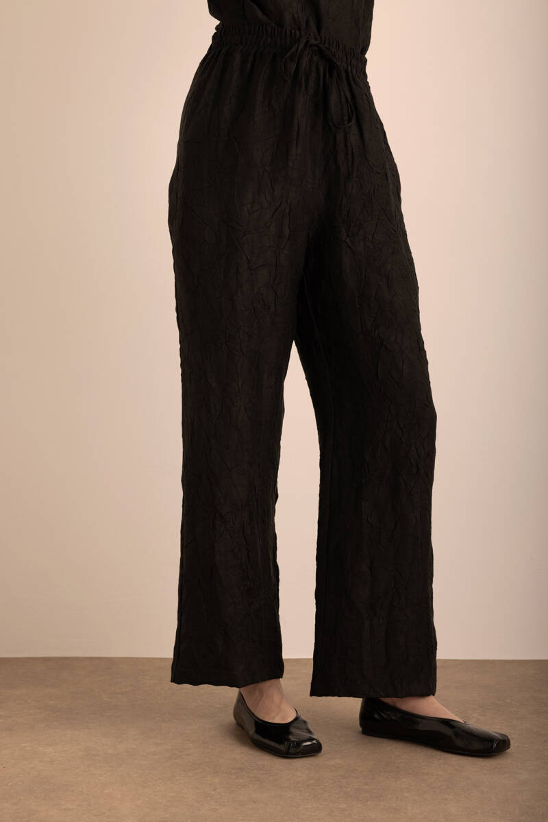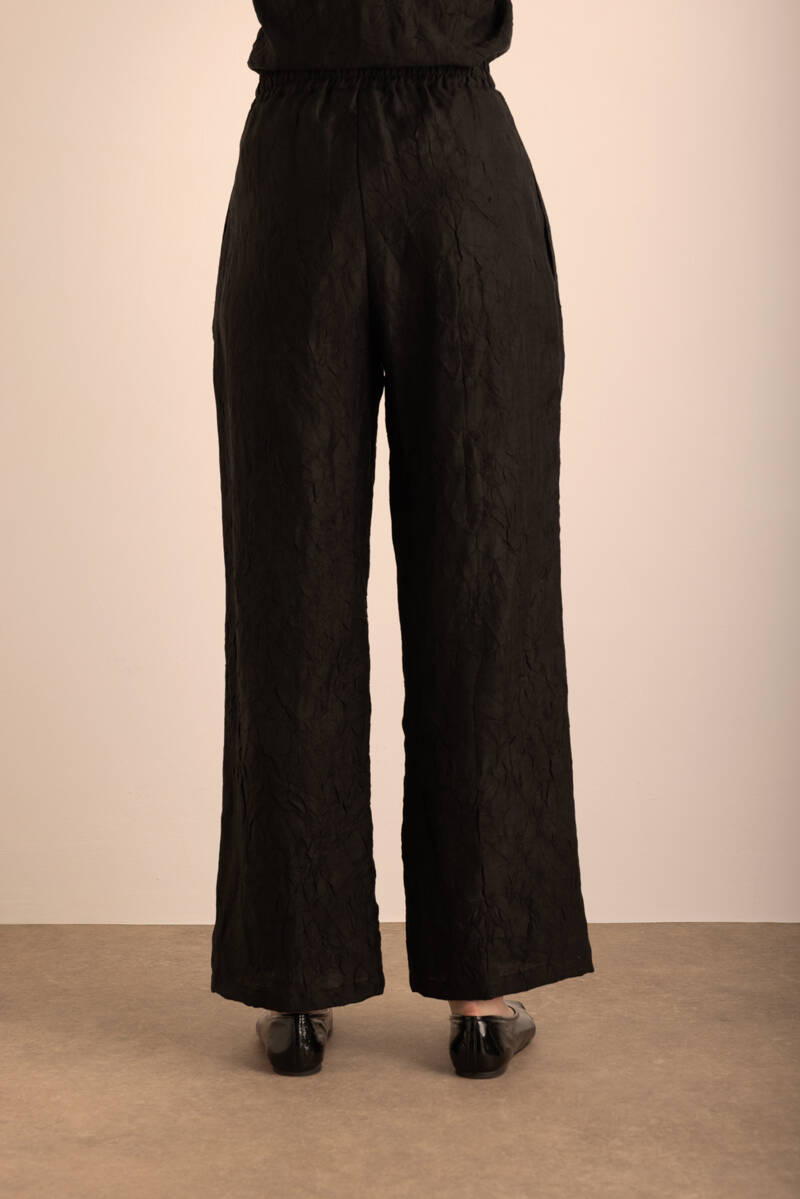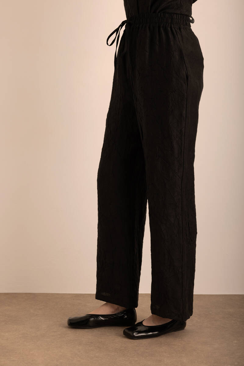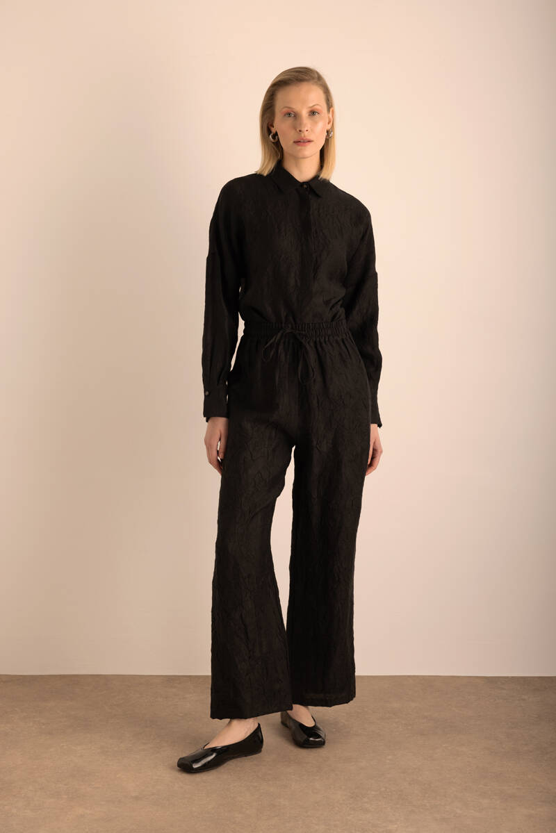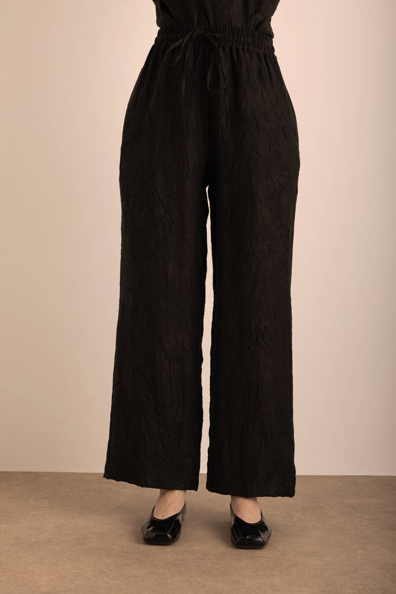 Siyah Belden Metal Toka Bağlama Detaylı Dokuma Pantolon