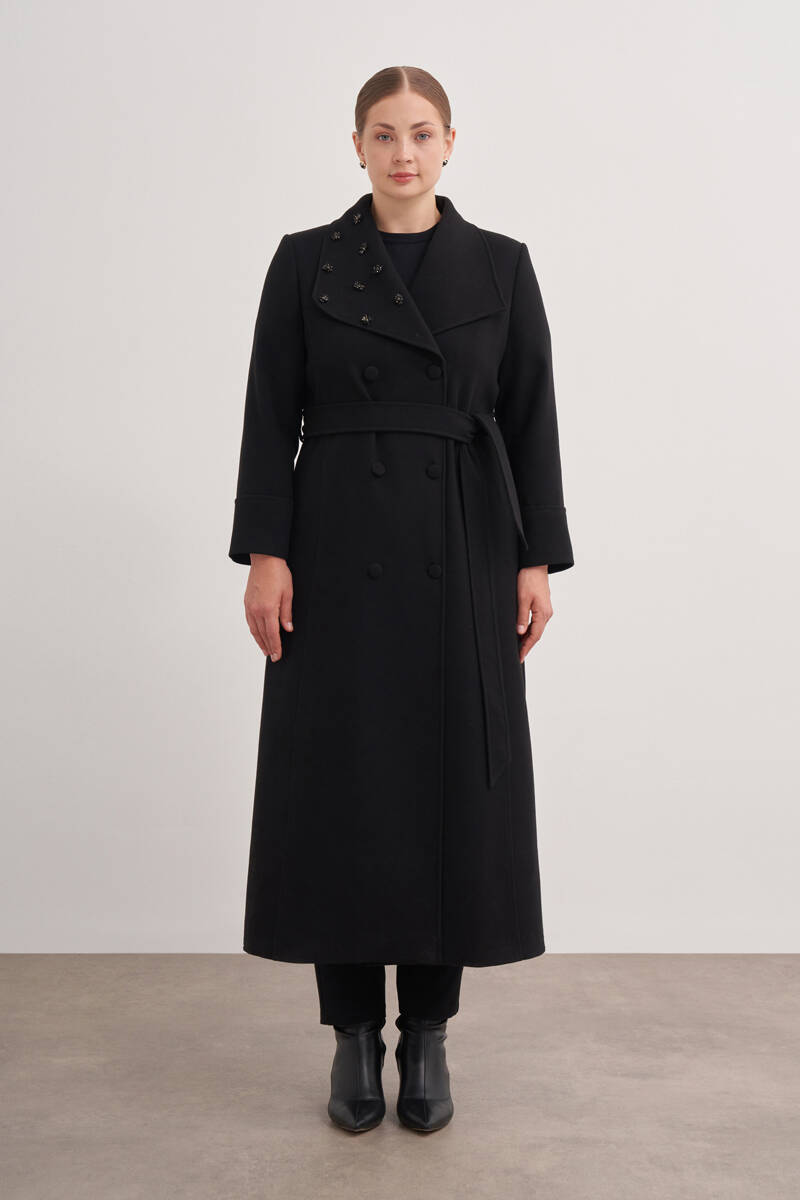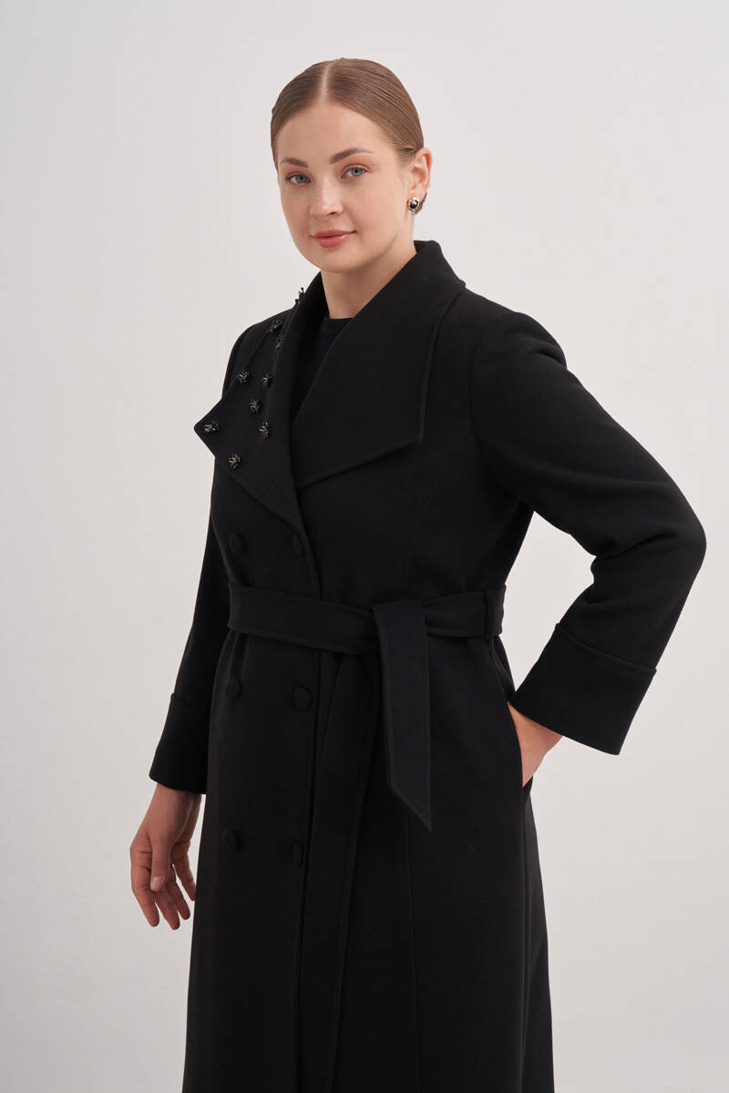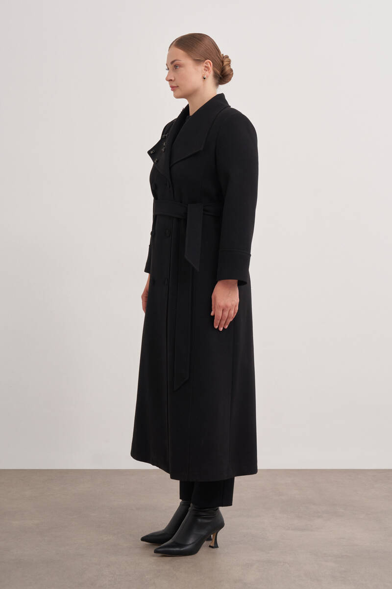 Siyah Kruvaze Kapama Kuşaklı Manto