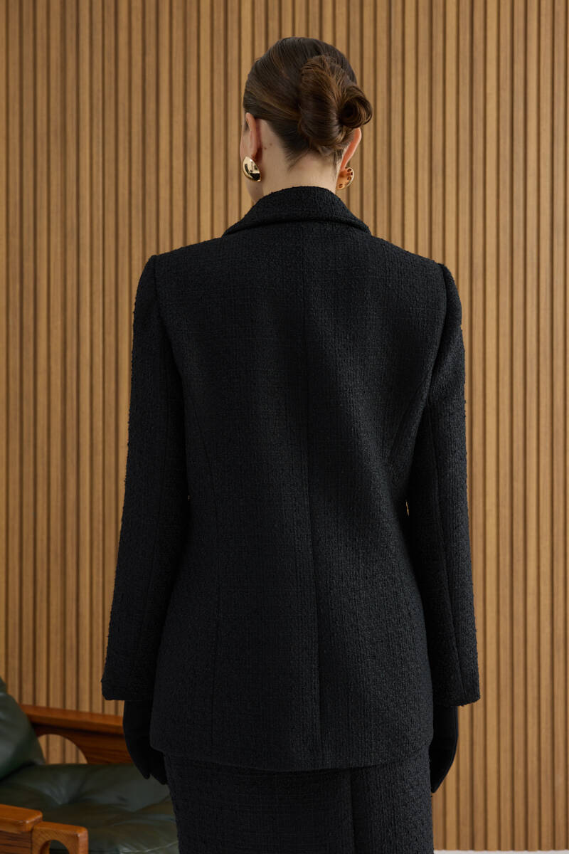 Siyah Taş Yapıştırmalı Dokuma Klasik Ceket