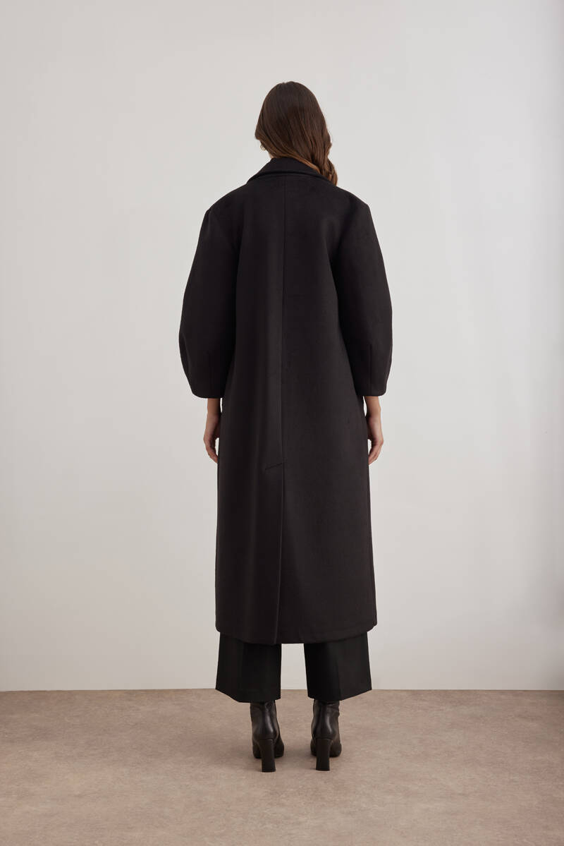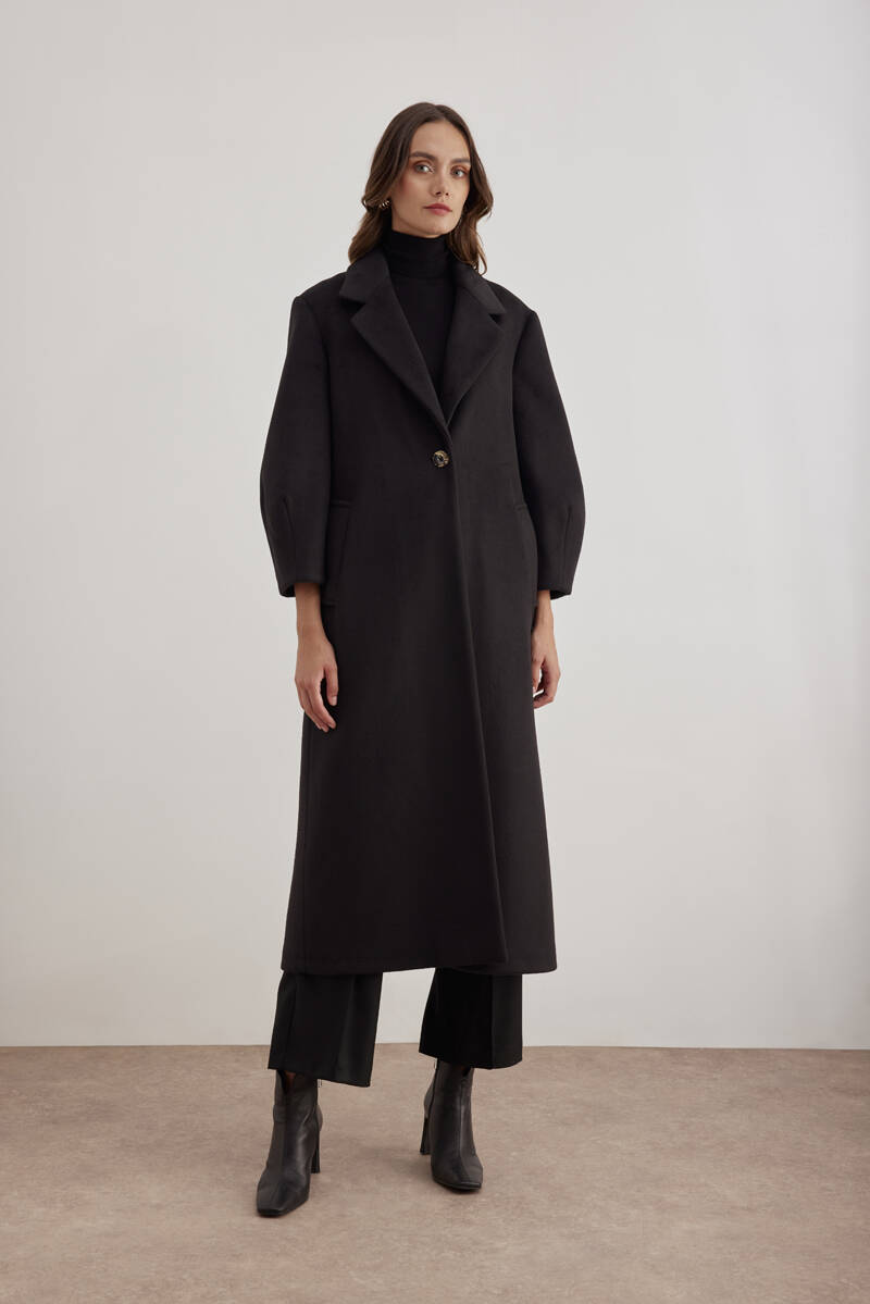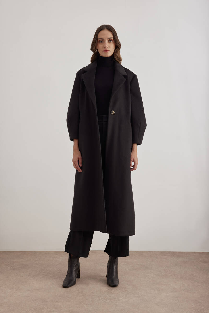 Siyah Kruvaze Kapamalı Pens Detaylı Manto