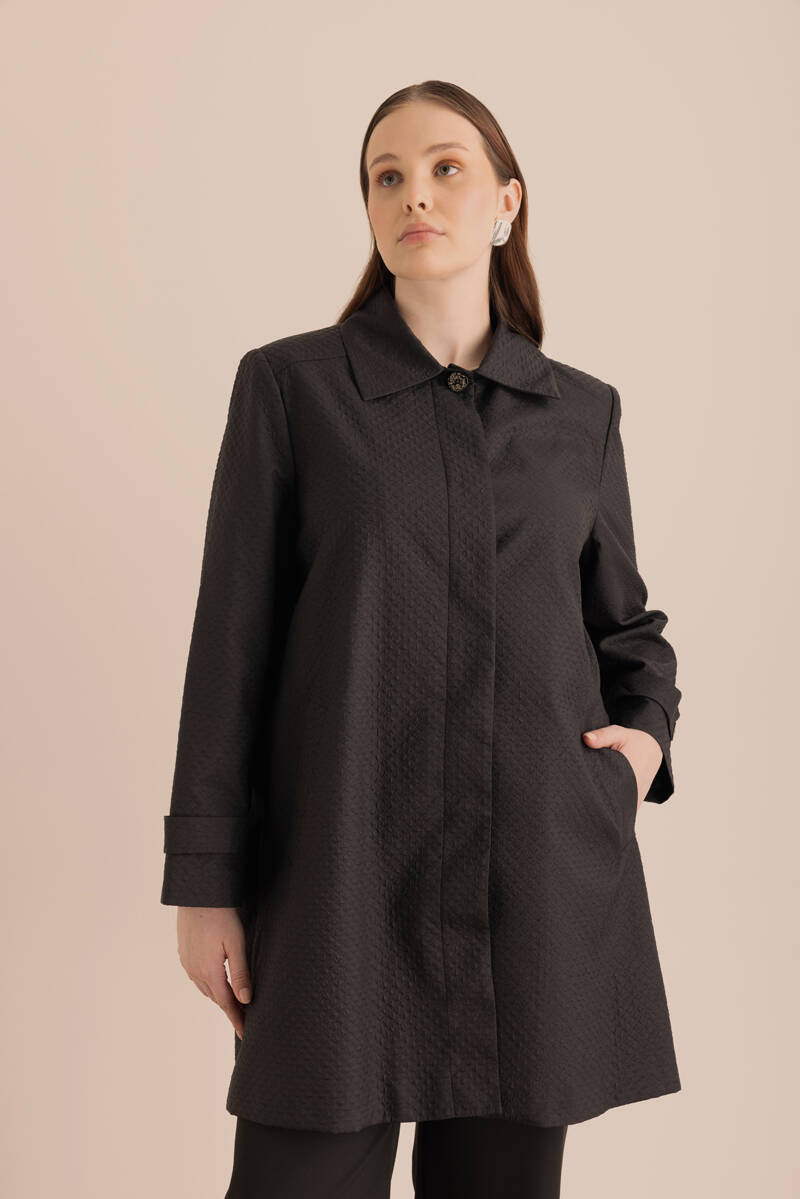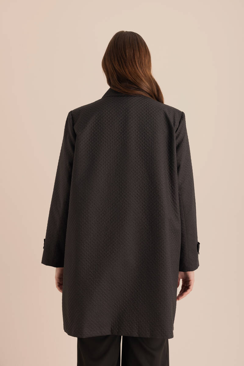 Siyah Kolları Pile Detaylı Kap