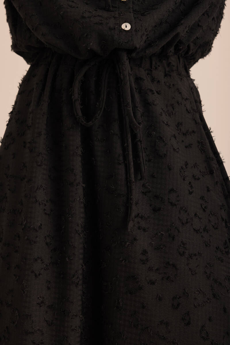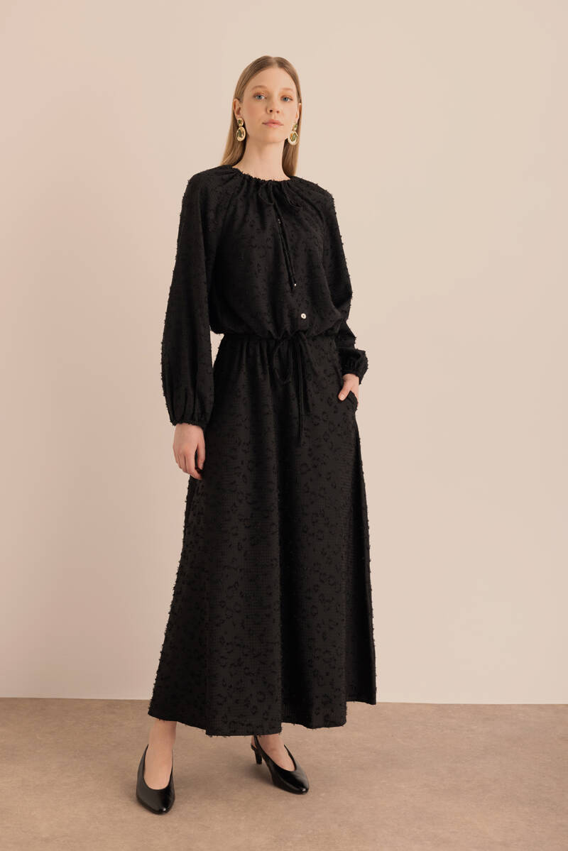 Siyah Doğal Dokulu Kumaş Gömlek Elbise