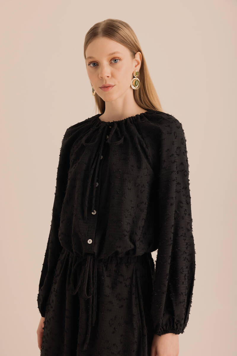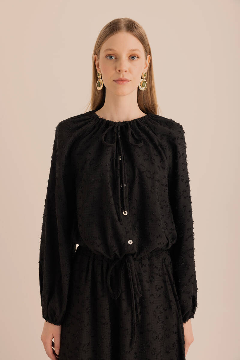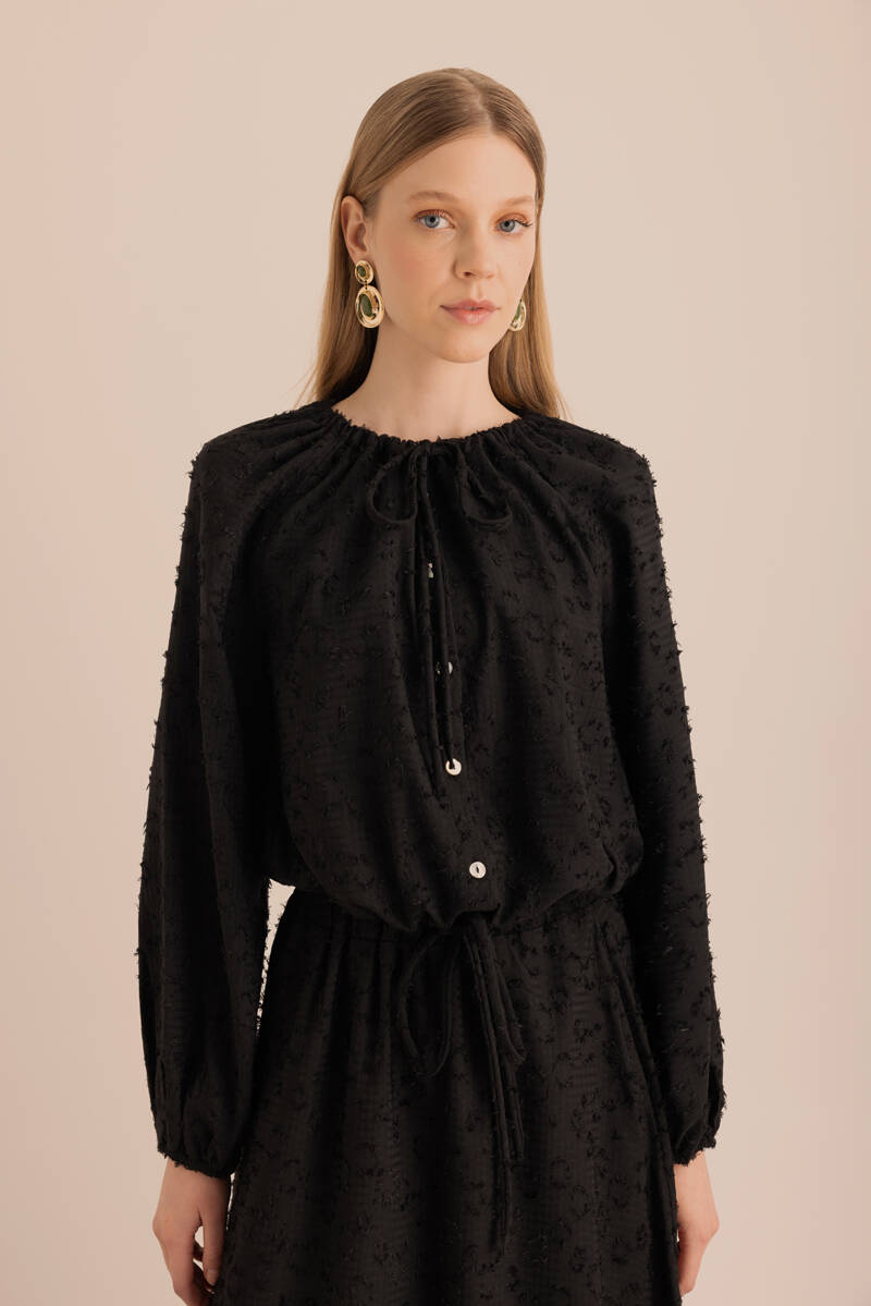 Siyah Doğal Dokulu Kumaş Gömlek Elbise