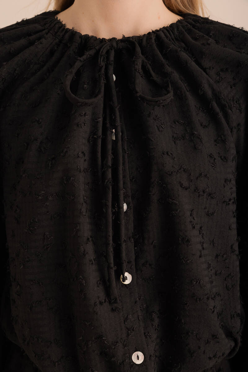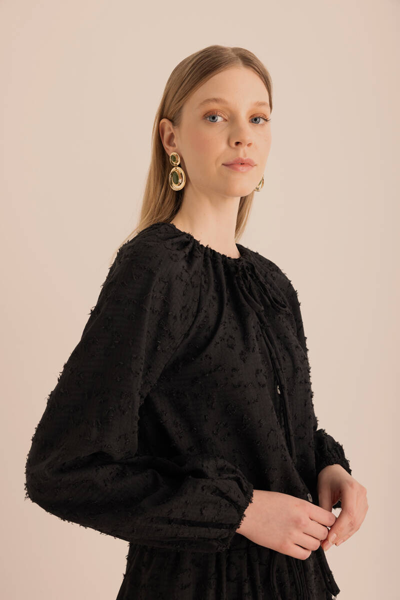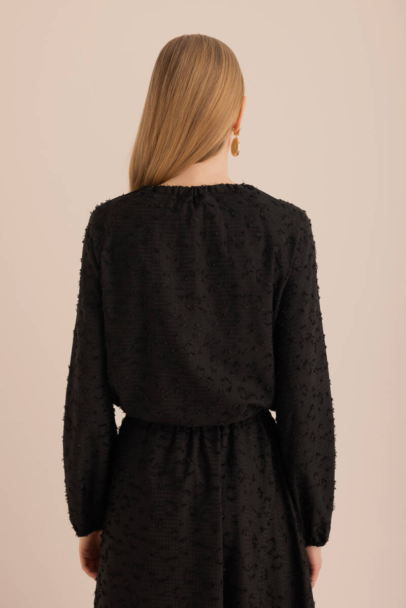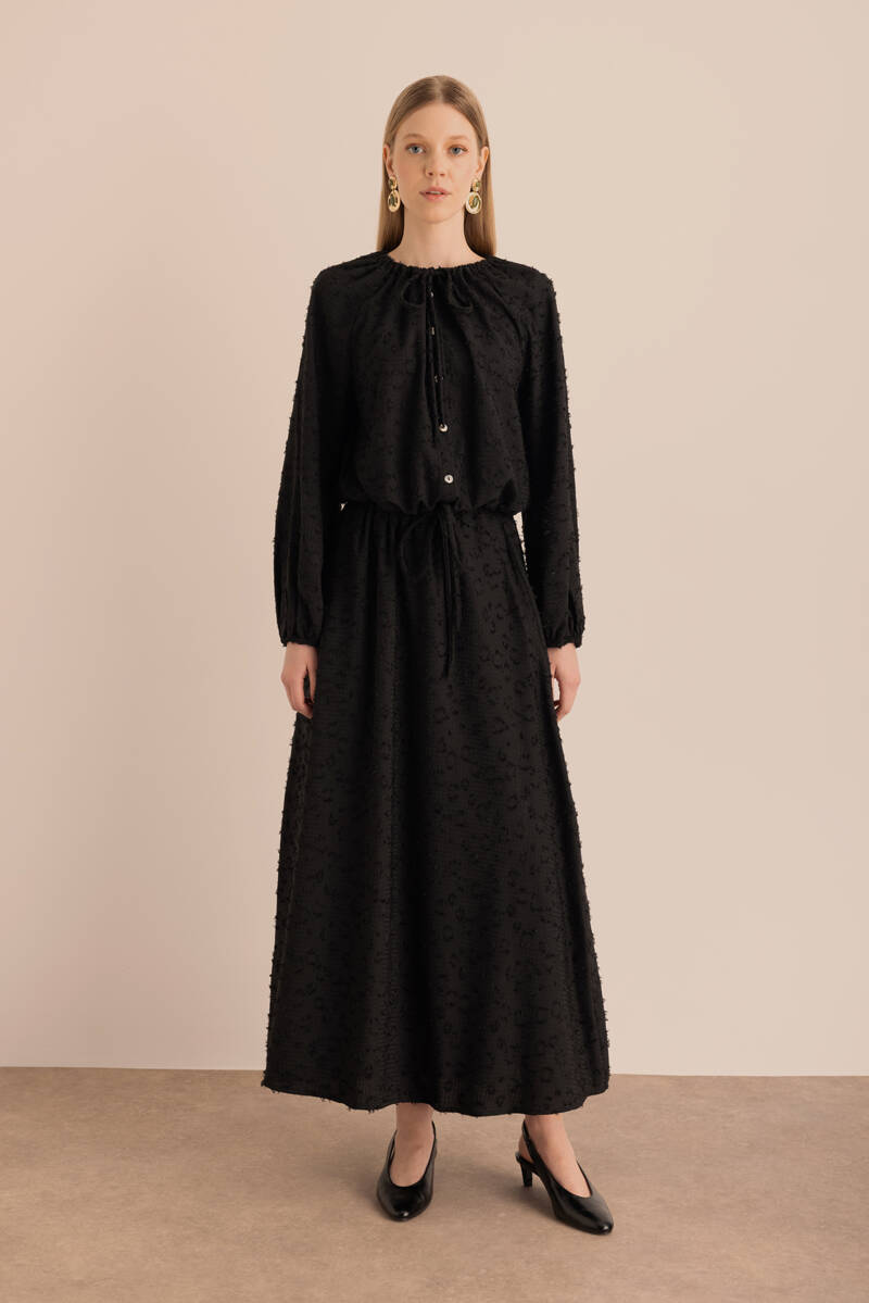 Siyah Doğal Dokulu Kumaş Gömlek Elbise