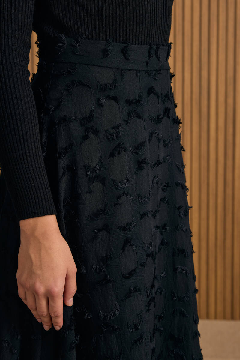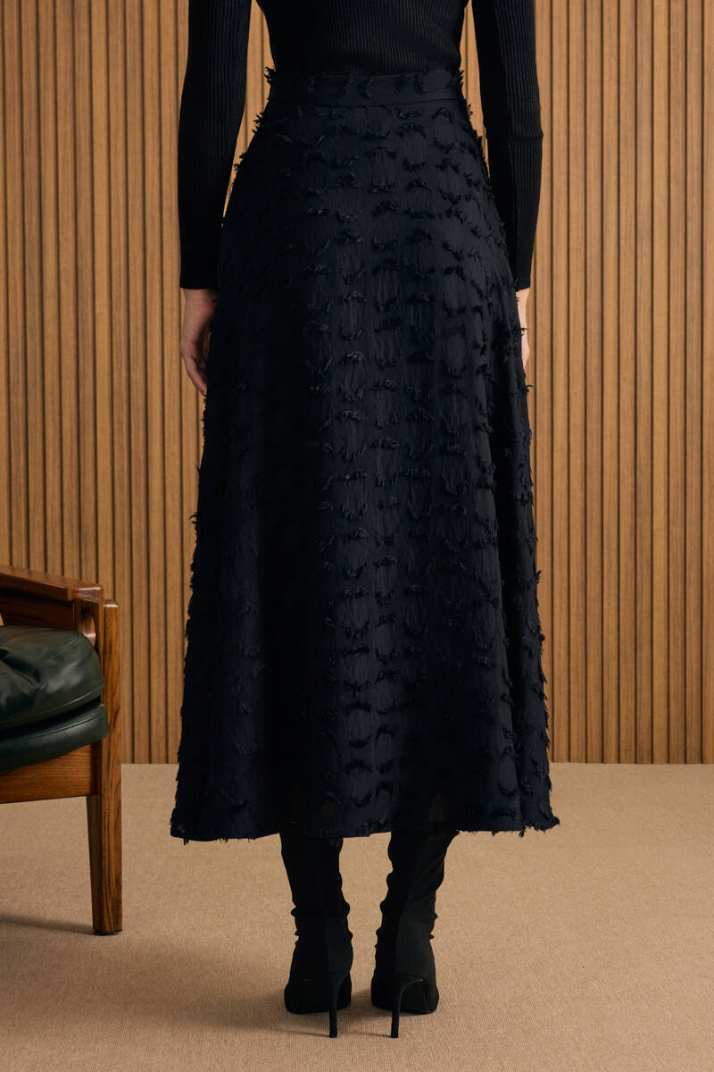 Siyah Kloş Yırtmaçllı Keten Etek