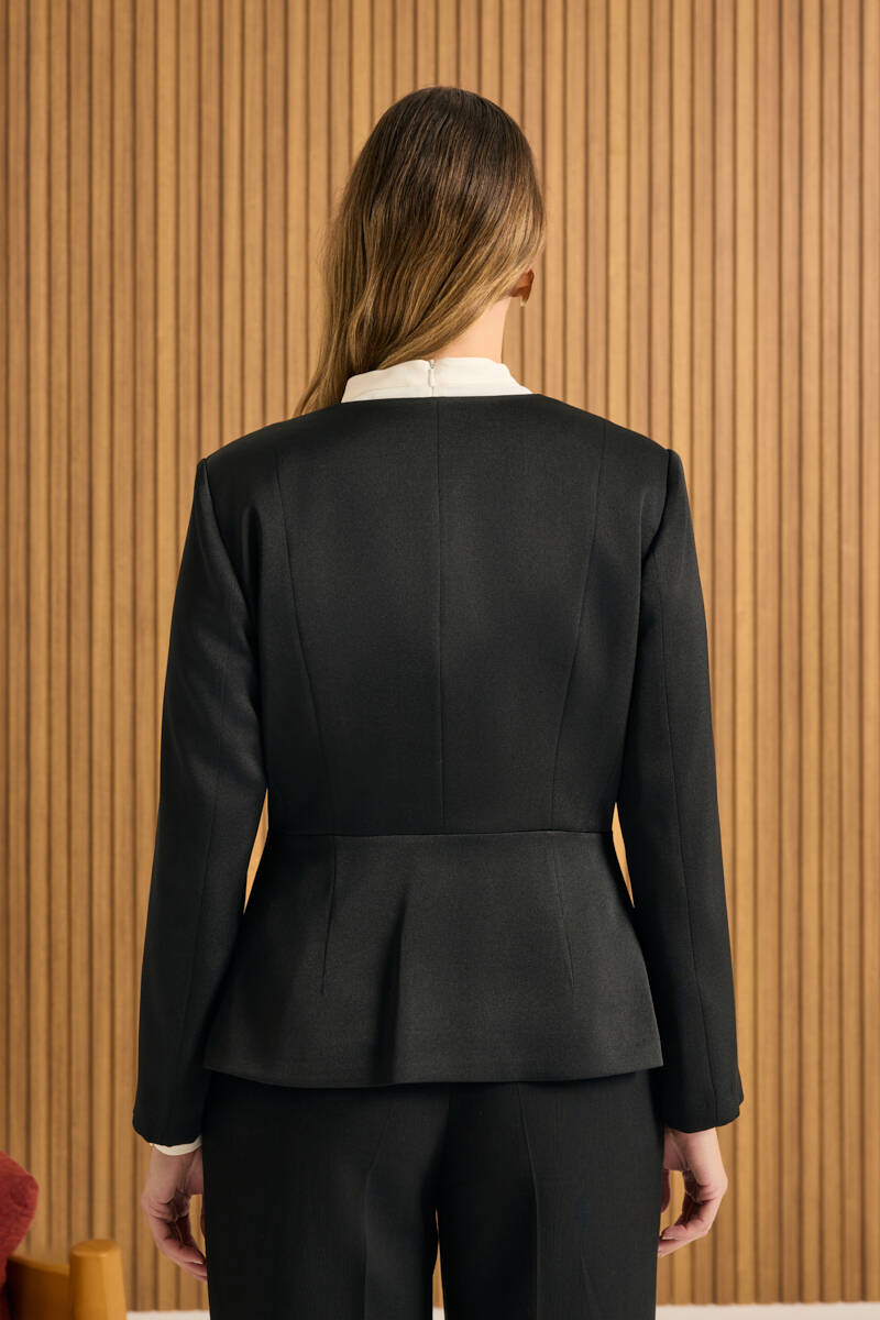 Siyah Taş Yapıştırmalı Dokuma Klasik Ceket