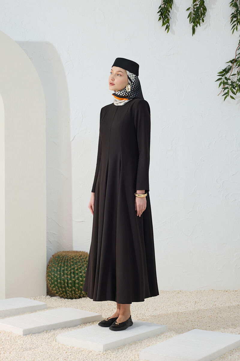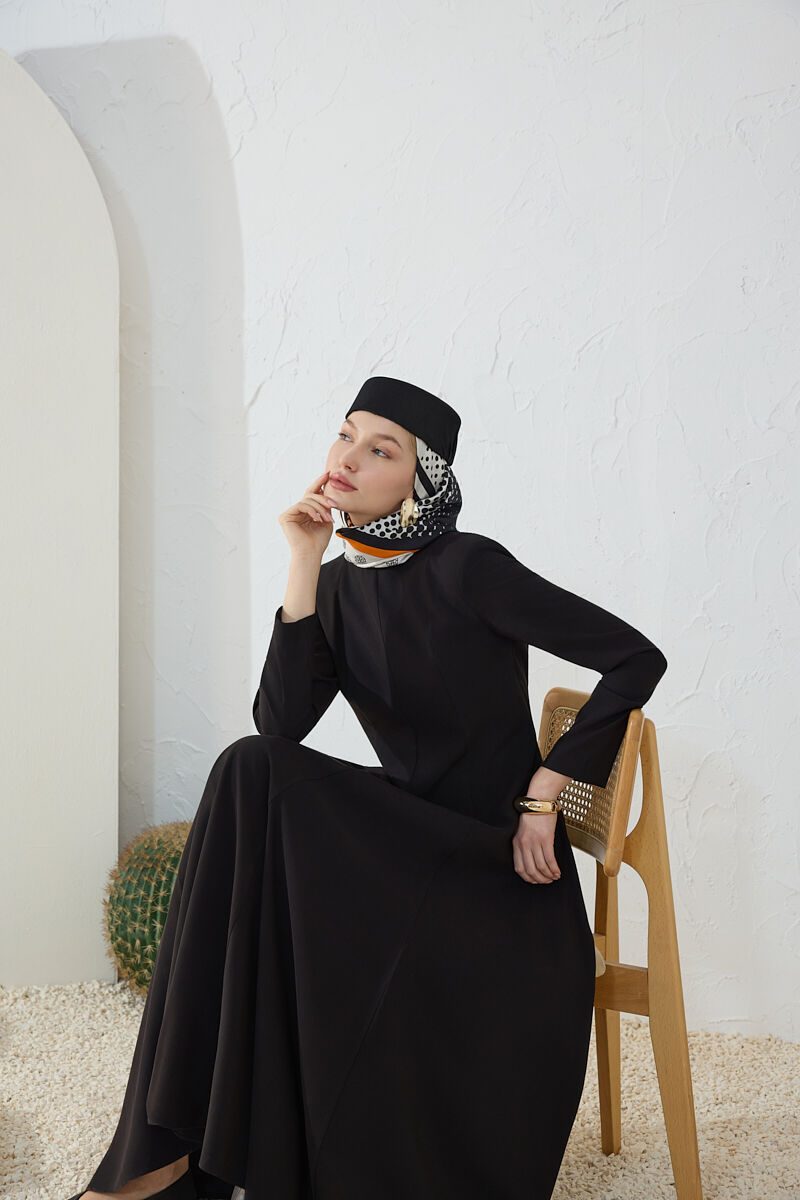 Siyah Etek Ucu Kontrast Nakış Detaylı Elbise
