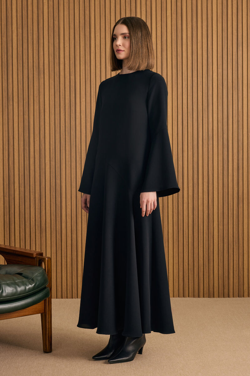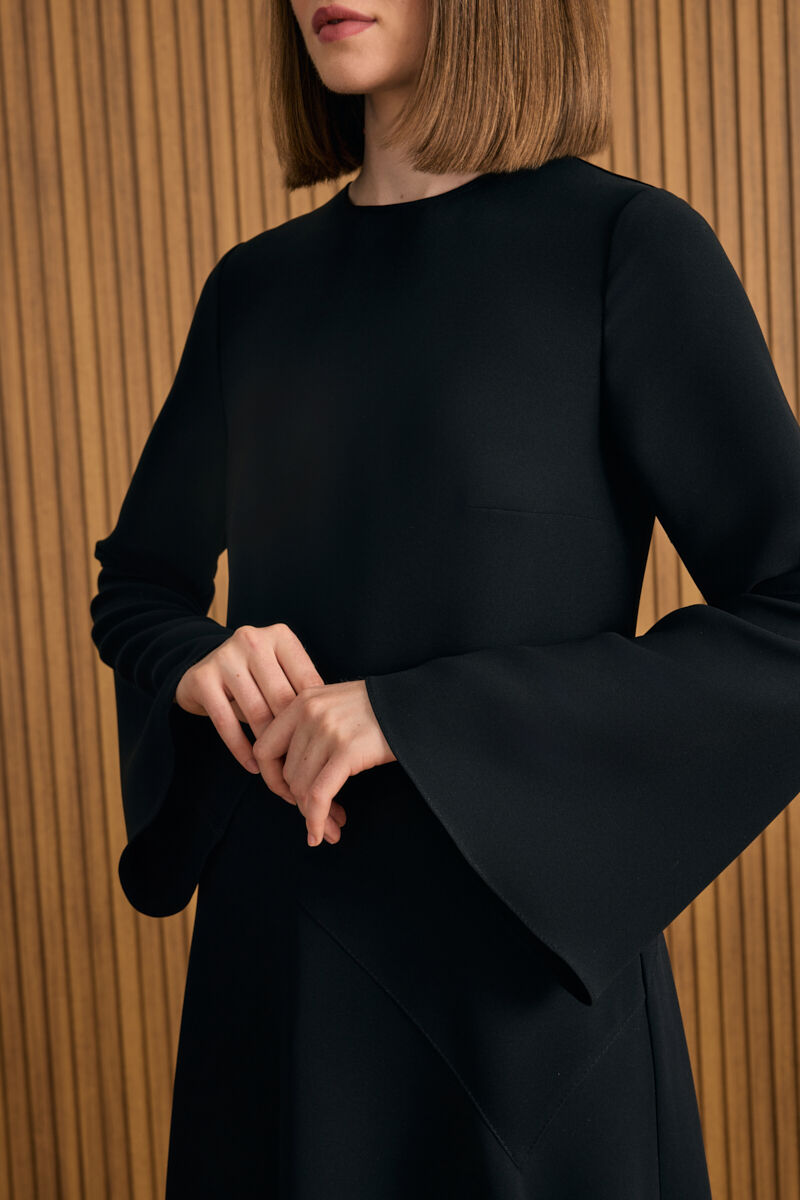 Siyah Doğal Dokulu Kumaş Gömlek Elbise