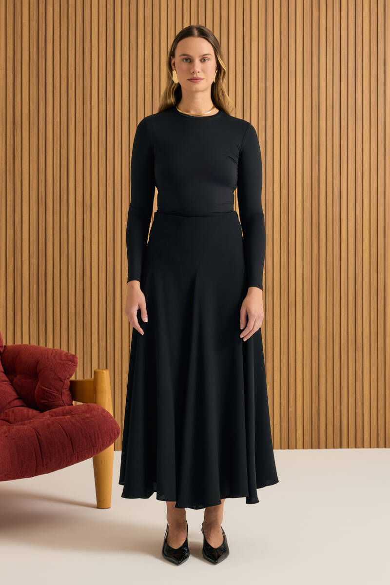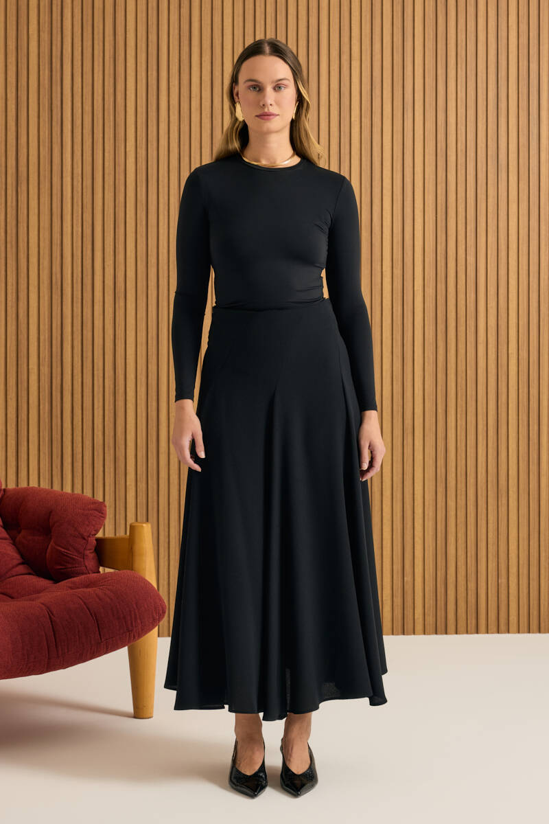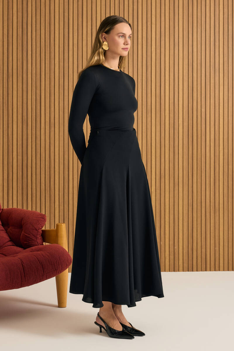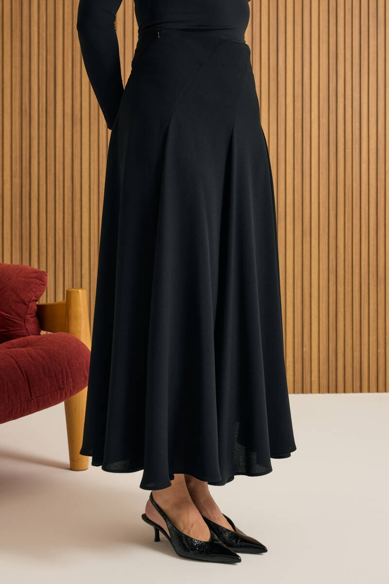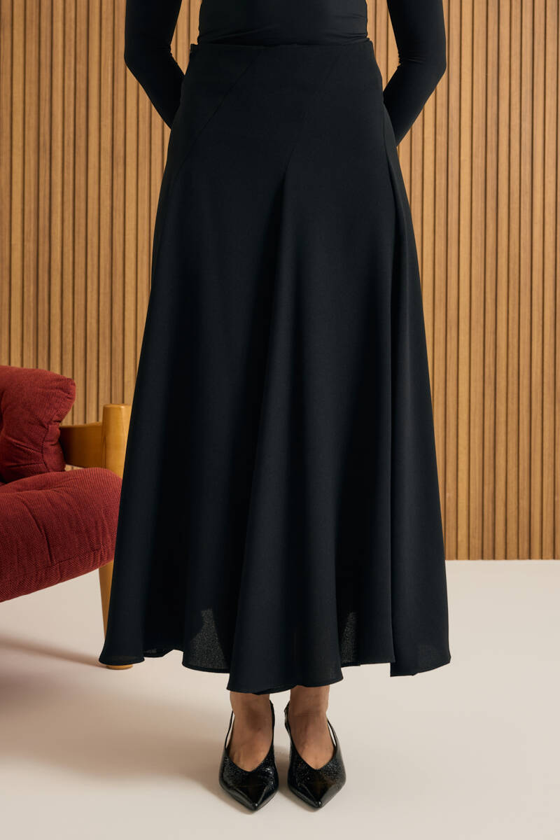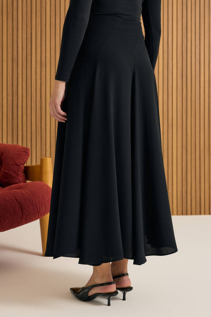 Siyah Kloş Yırtmaçllı Keten Etek