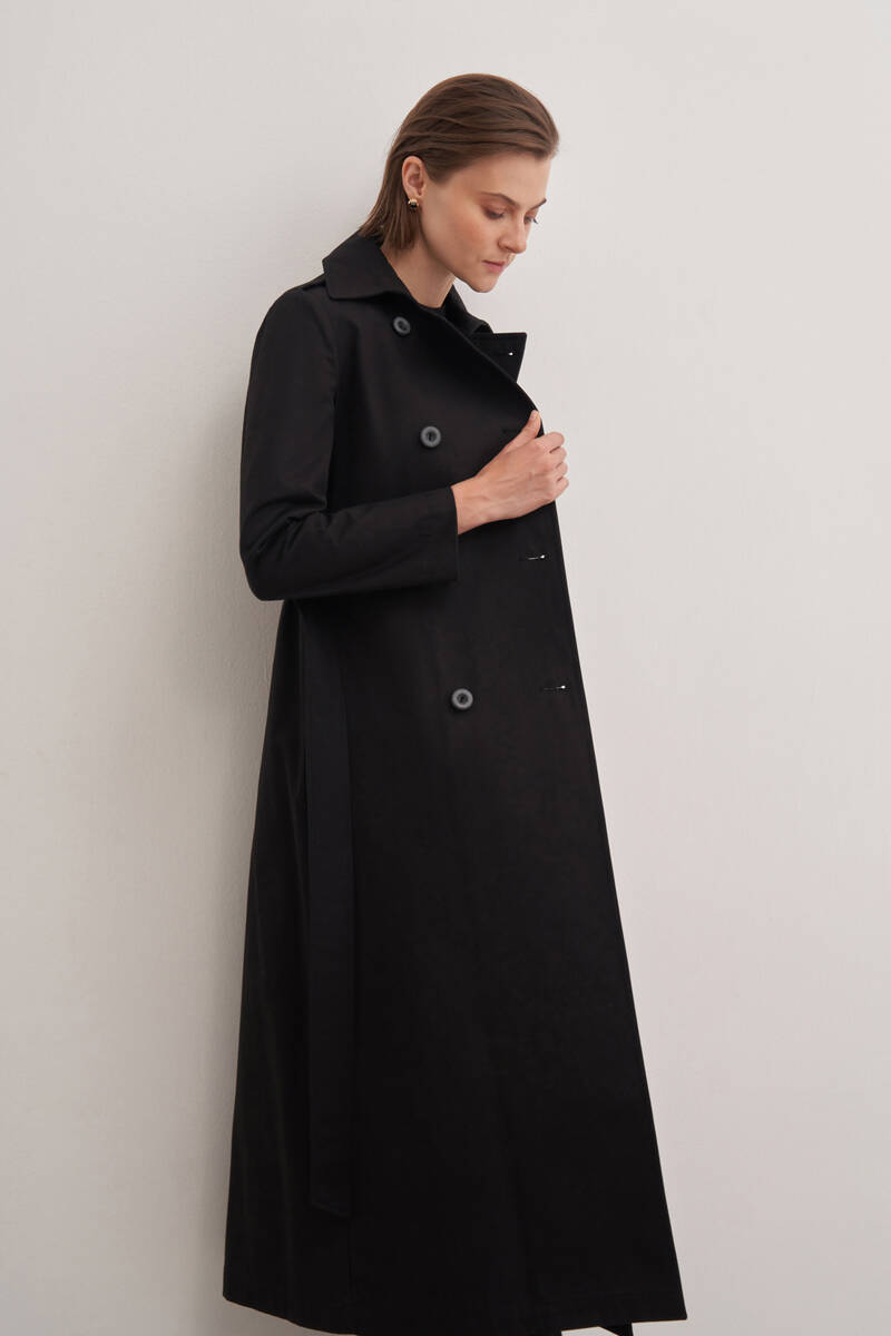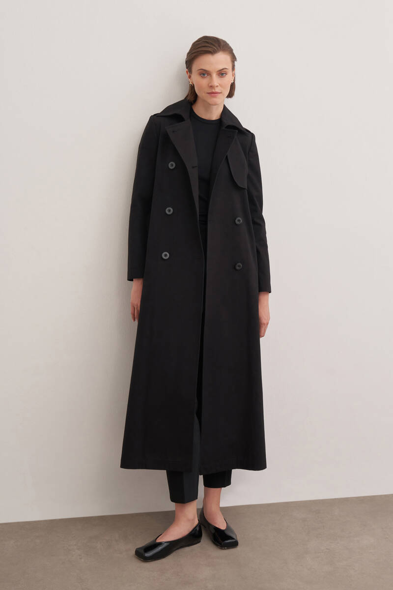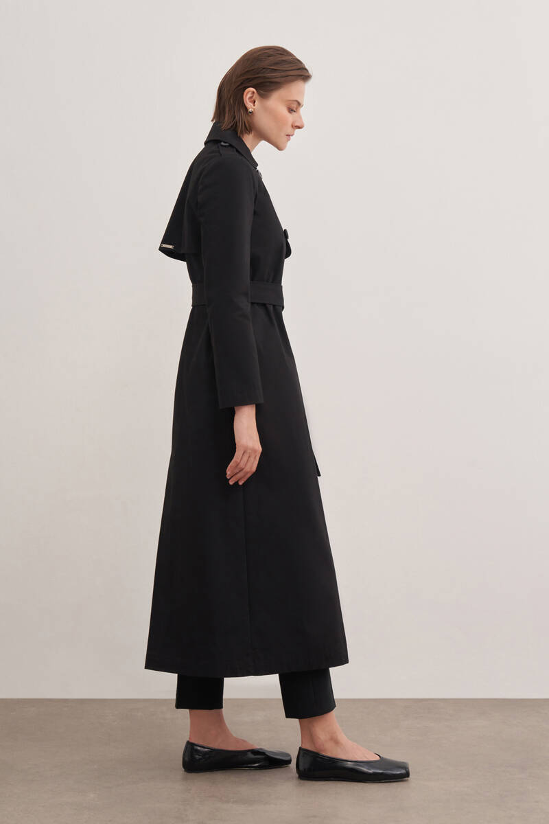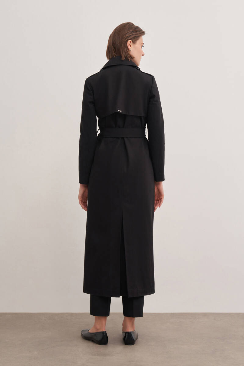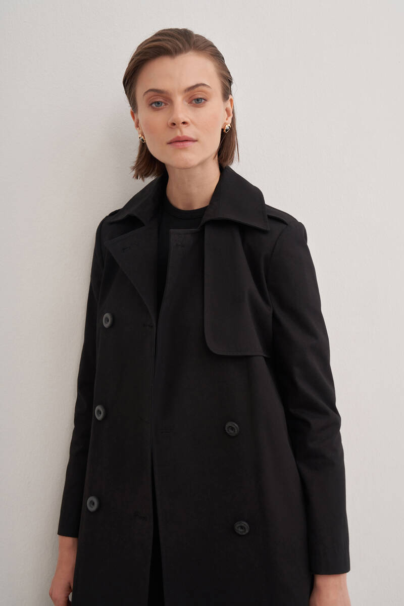 Siyah 18178111 Düğmeli Kruvaze Trençkot