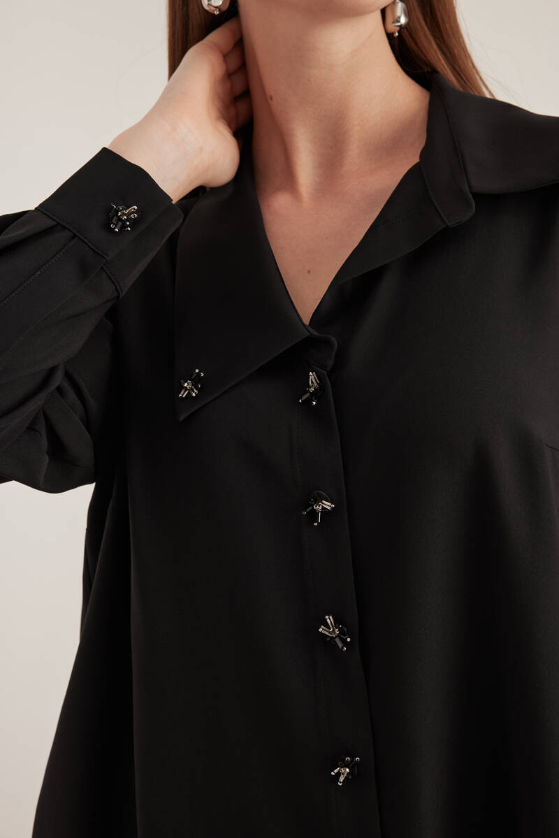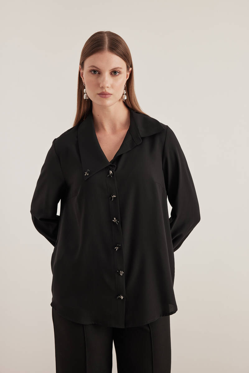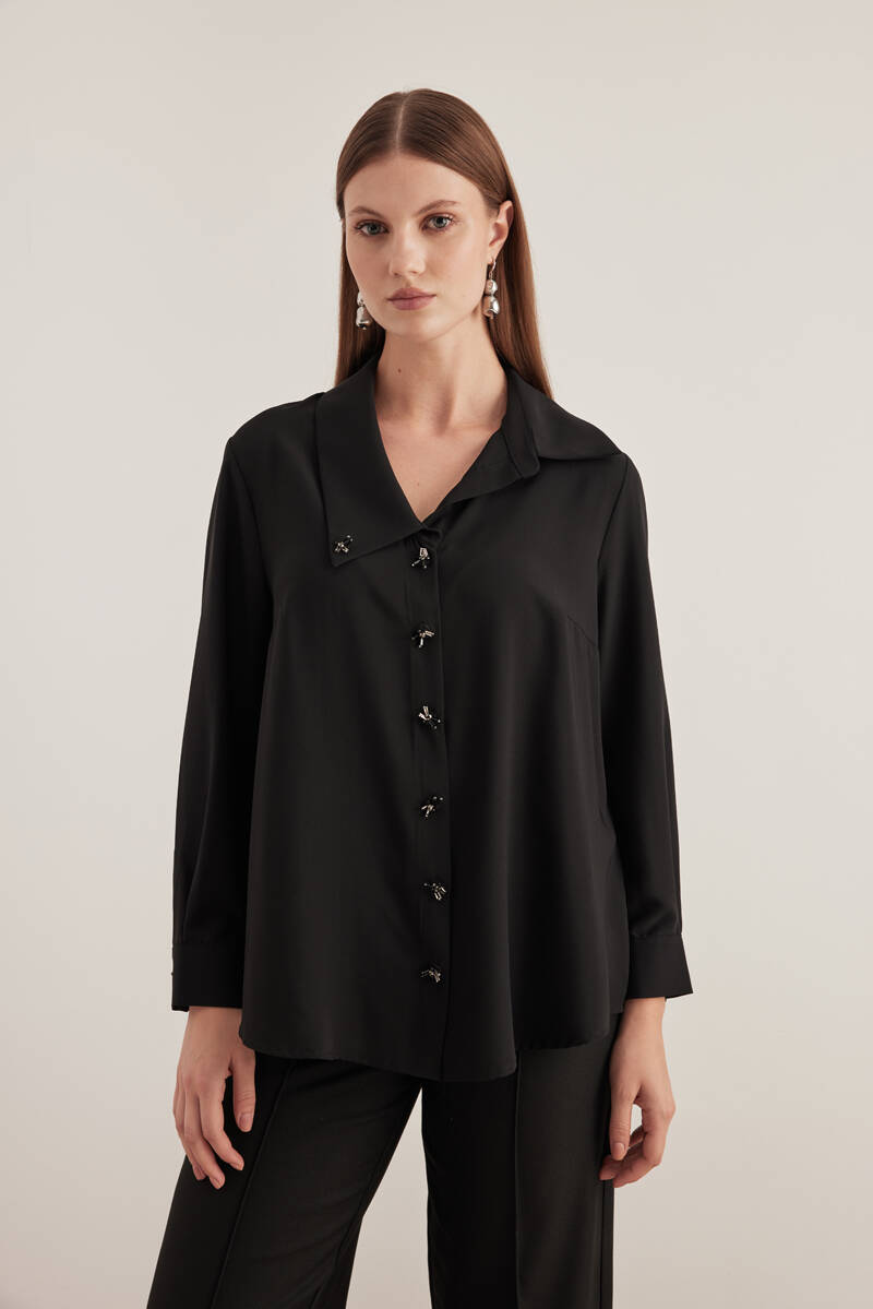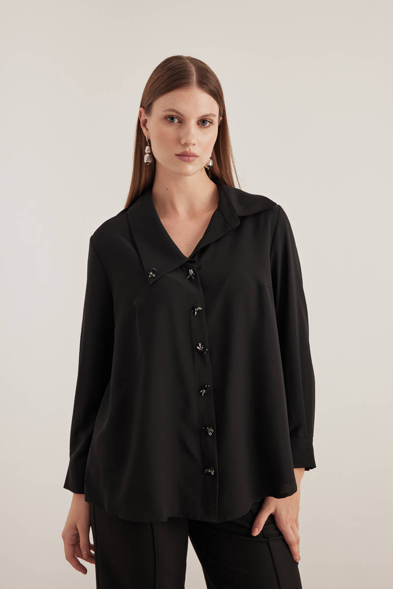 Pembe Yakası Pili ve İşleme Detaylı Dokuma Bluz