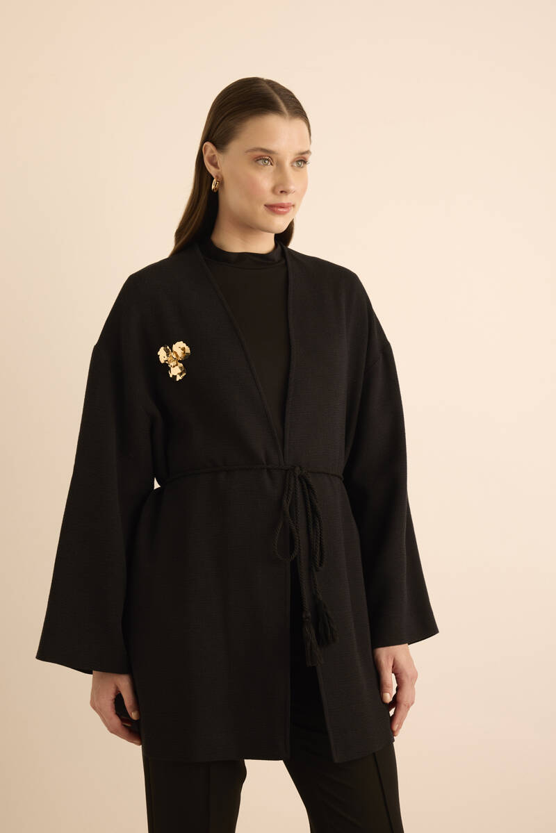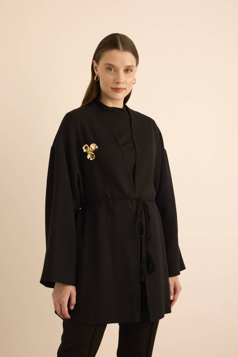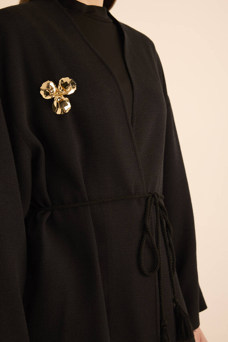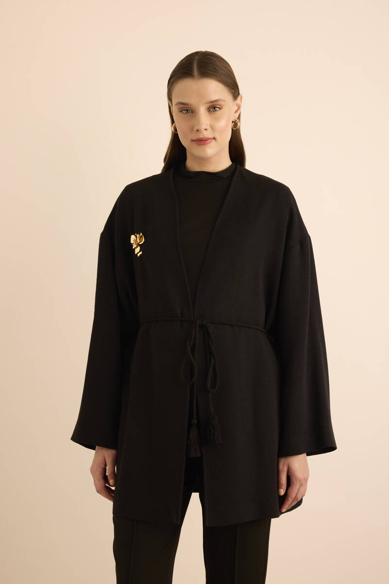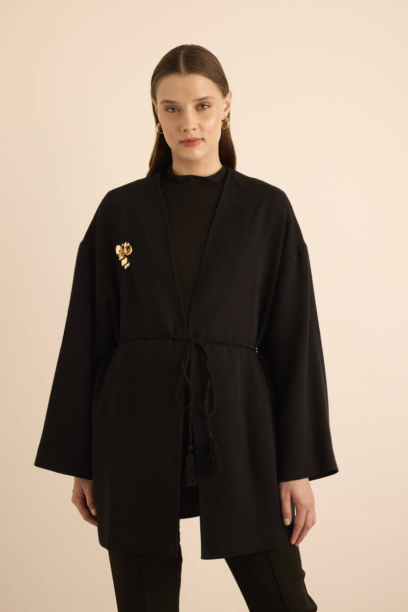 Siyah Metal Broşlu Beli Kordon Bağcıklı Kap