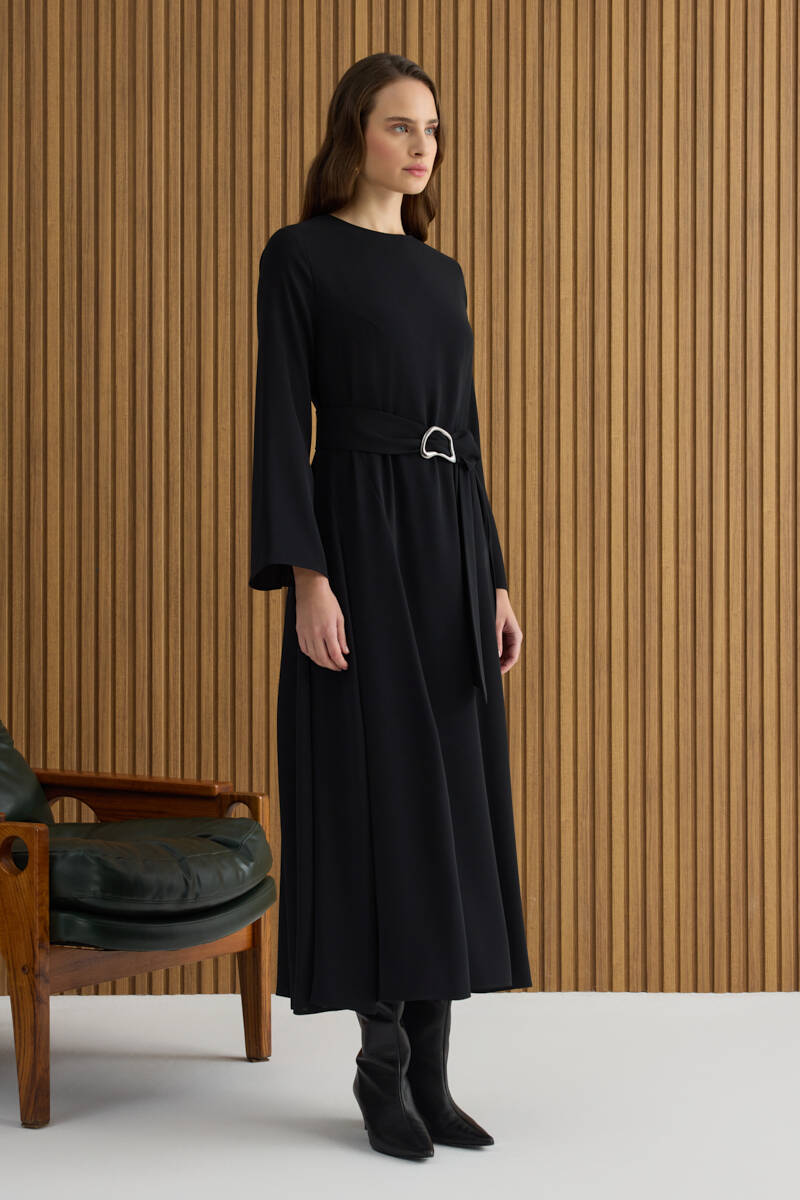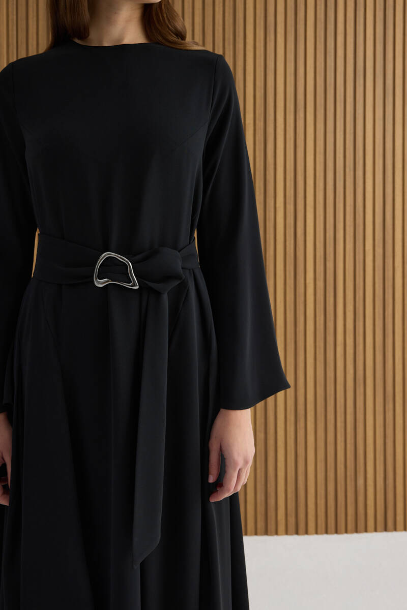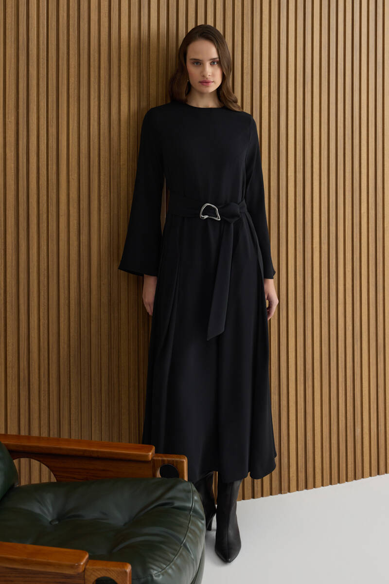 Siyah Doğal Dokulu Kumaş Gömlek Elbise