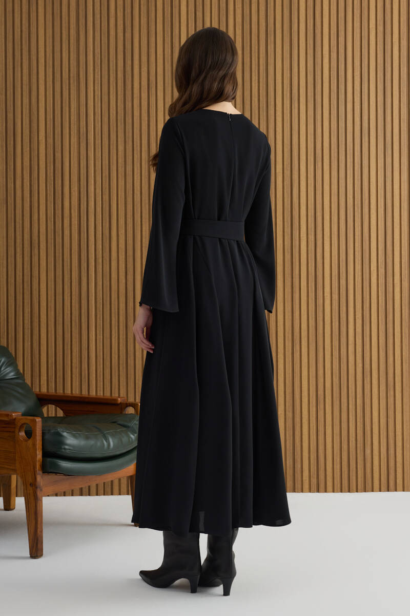 Siyah Etek Ucu Kontrast Nakış Detaylı Elbise
