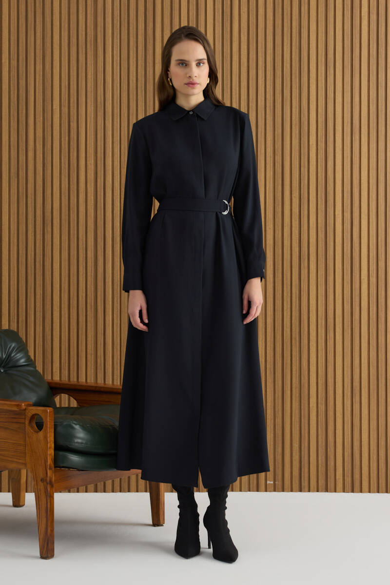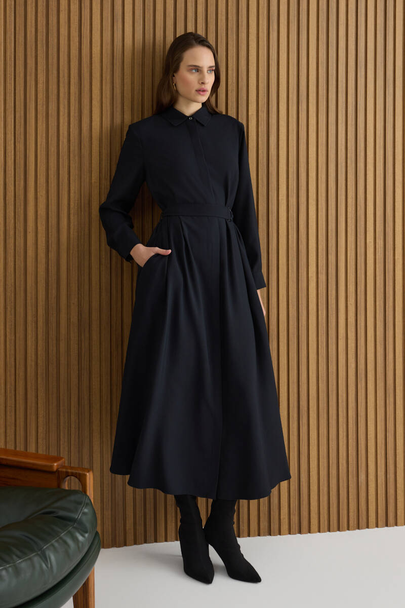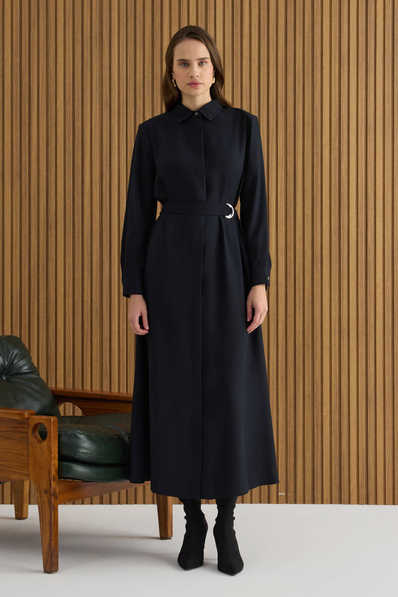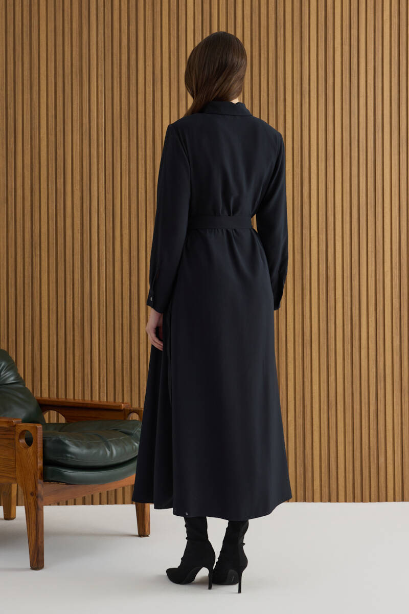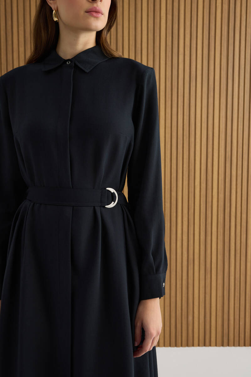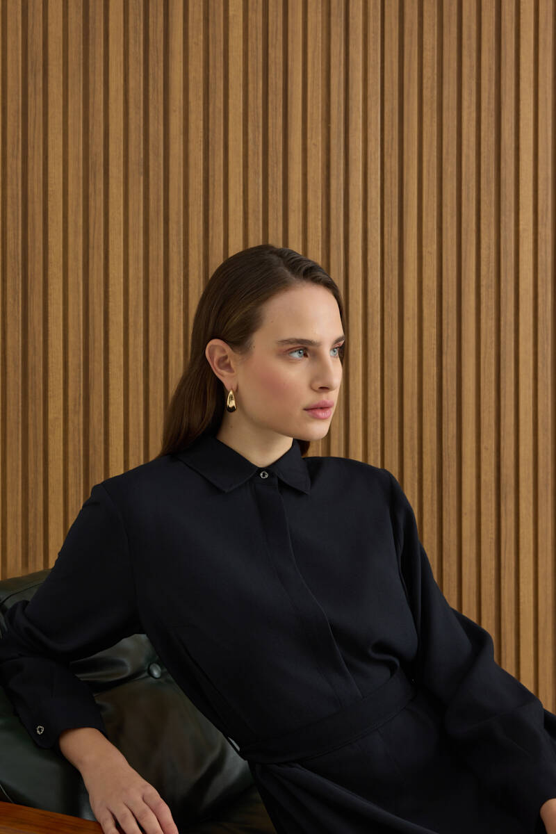 Siyah Doğal Dokulu Kumaş Gömlek Elbise