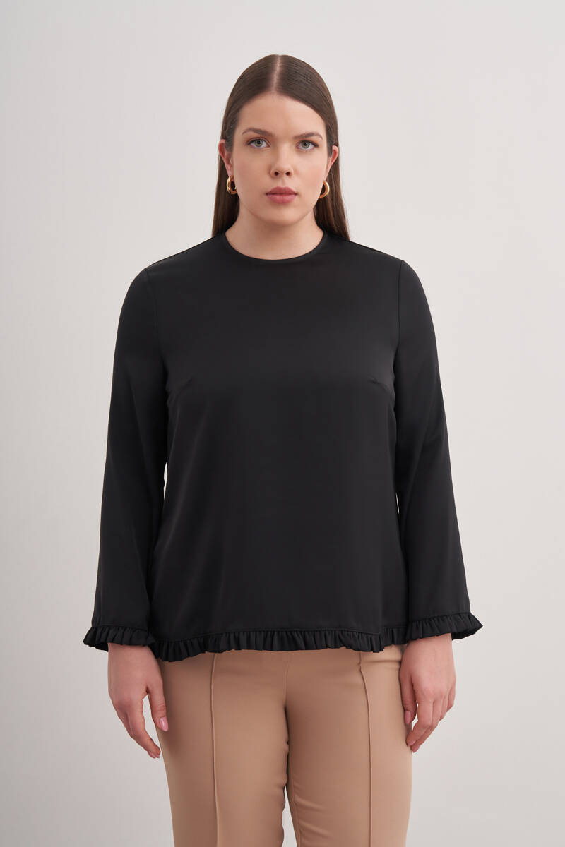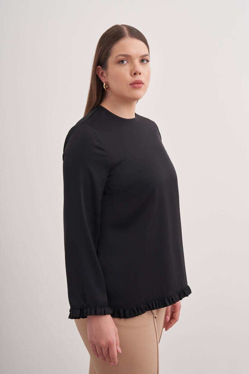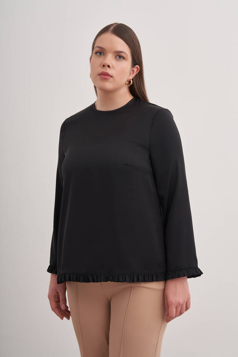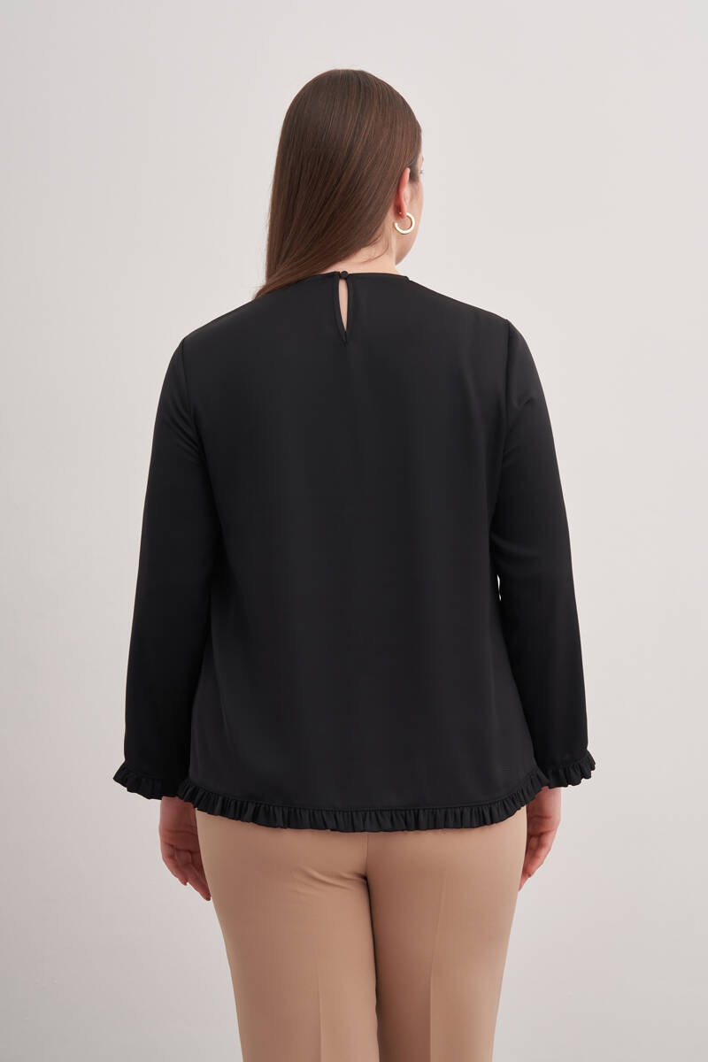 Siyah Tencel Keten Bluz