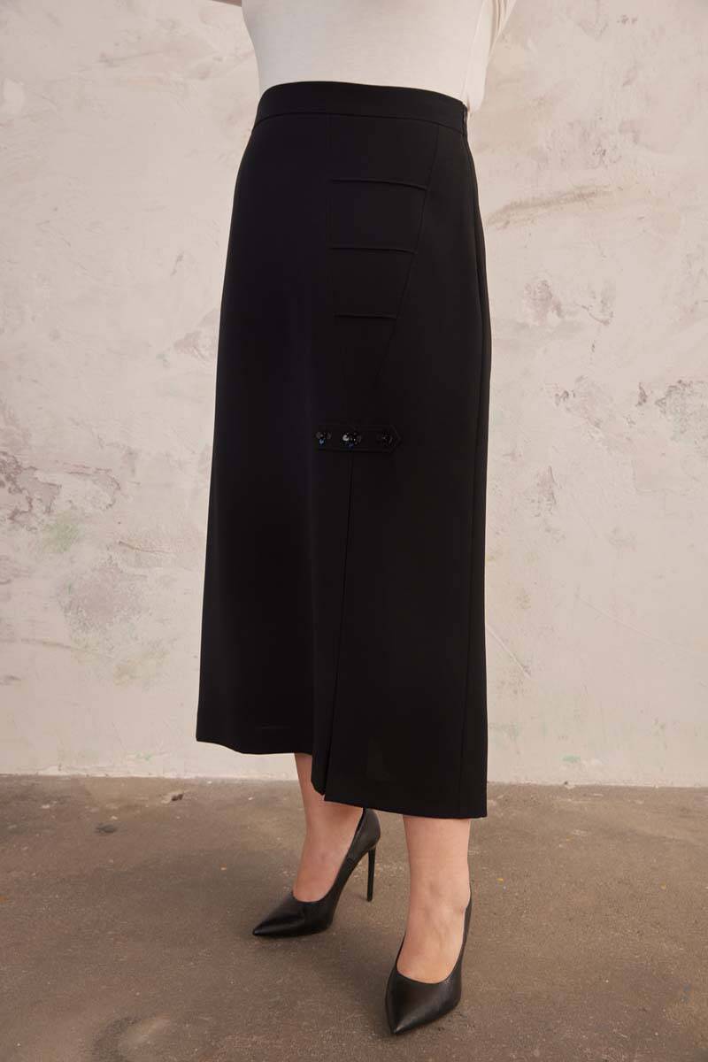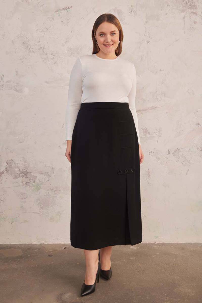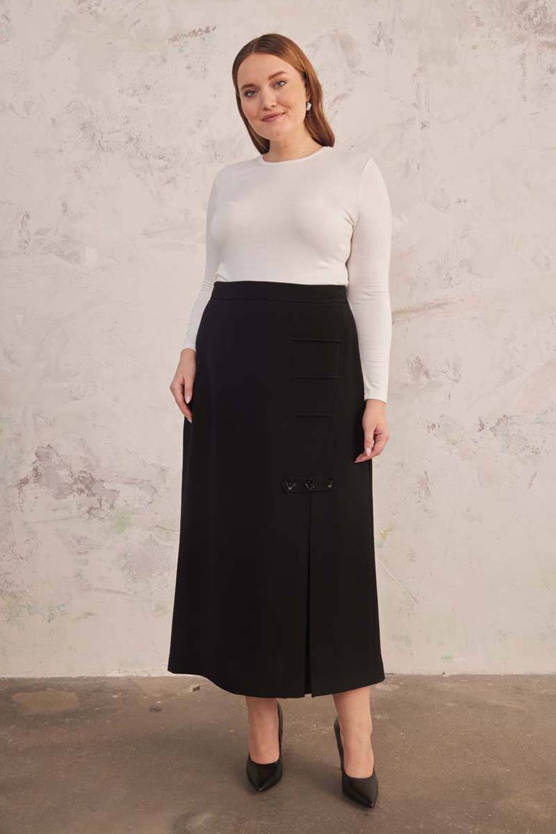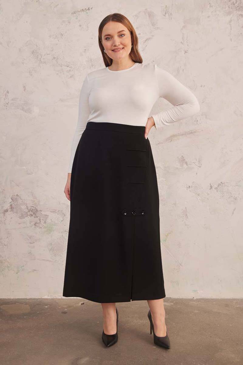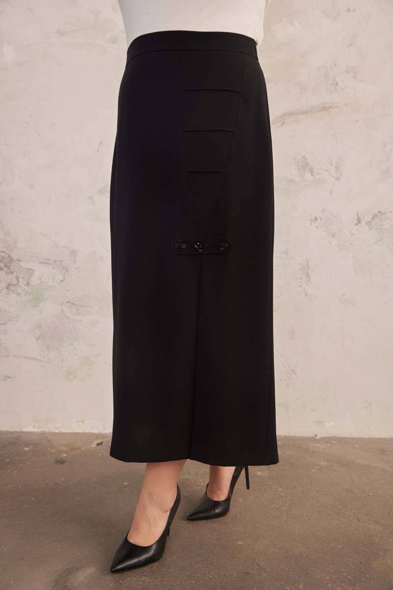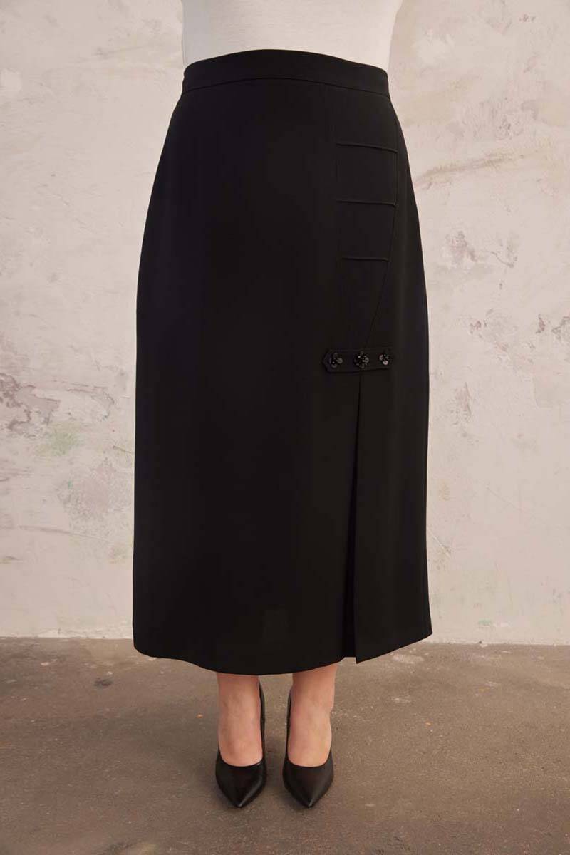 Siyah 1175111 DERİ ETEK DÜĞME AKSESUARLI