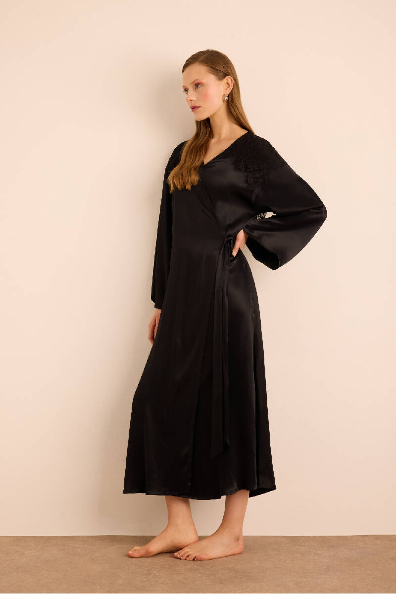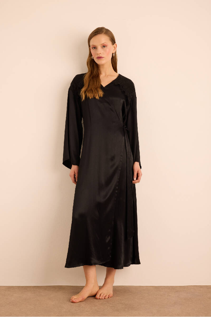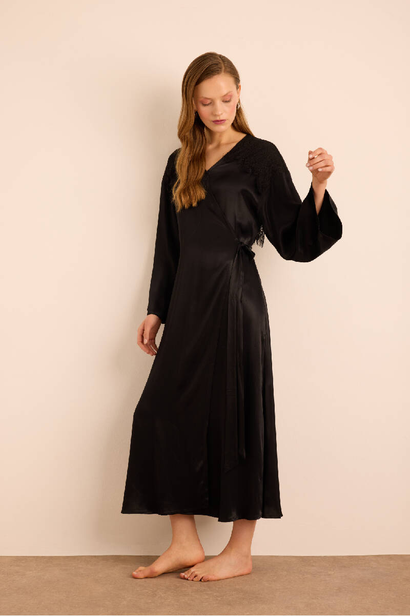 Siyah Viscon Cotton , Yandan Bağlamalı Sabahlık