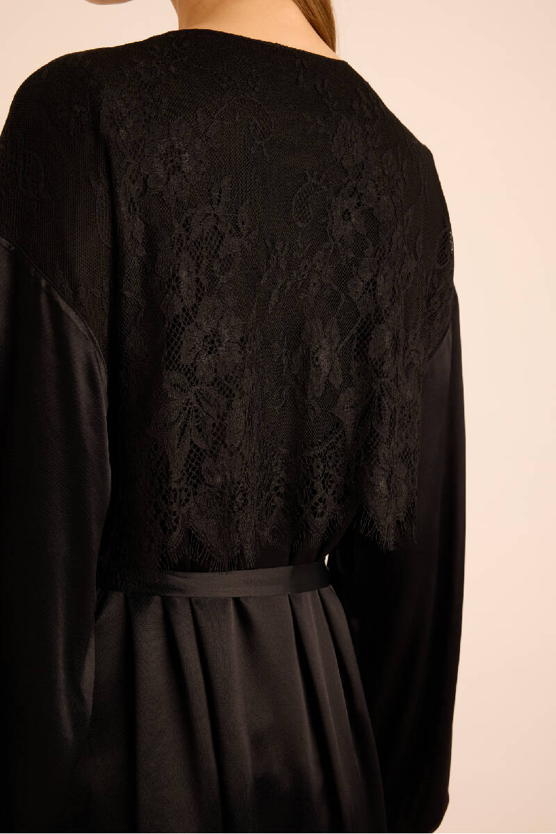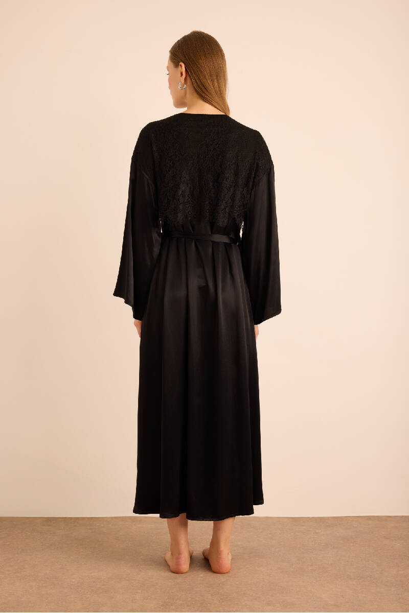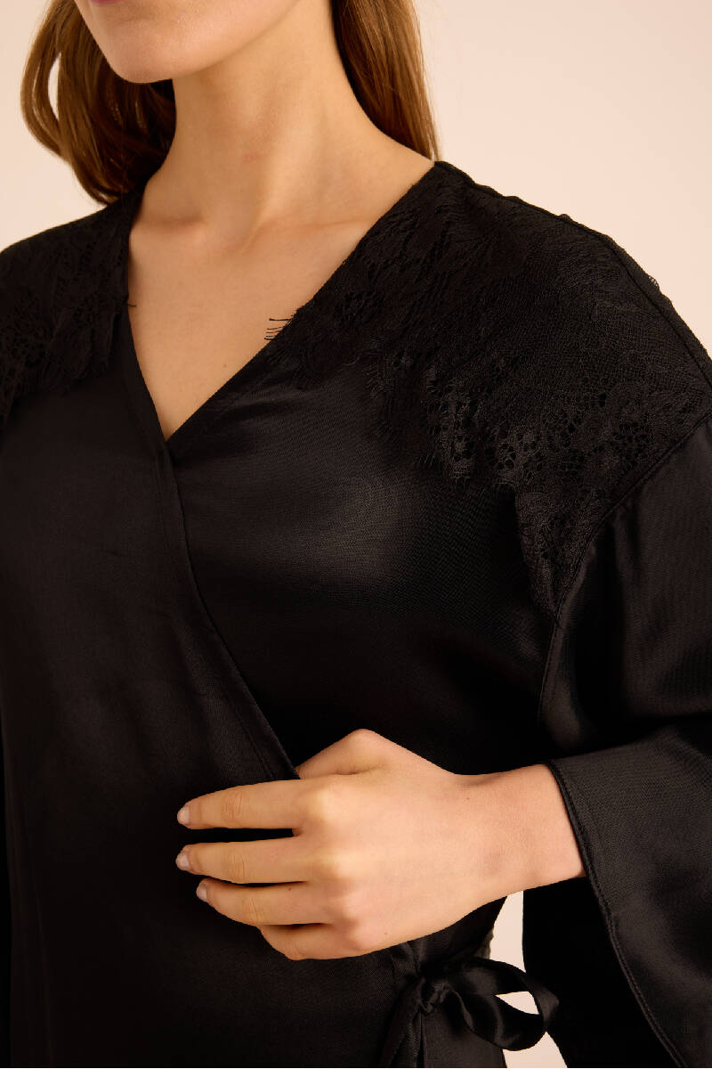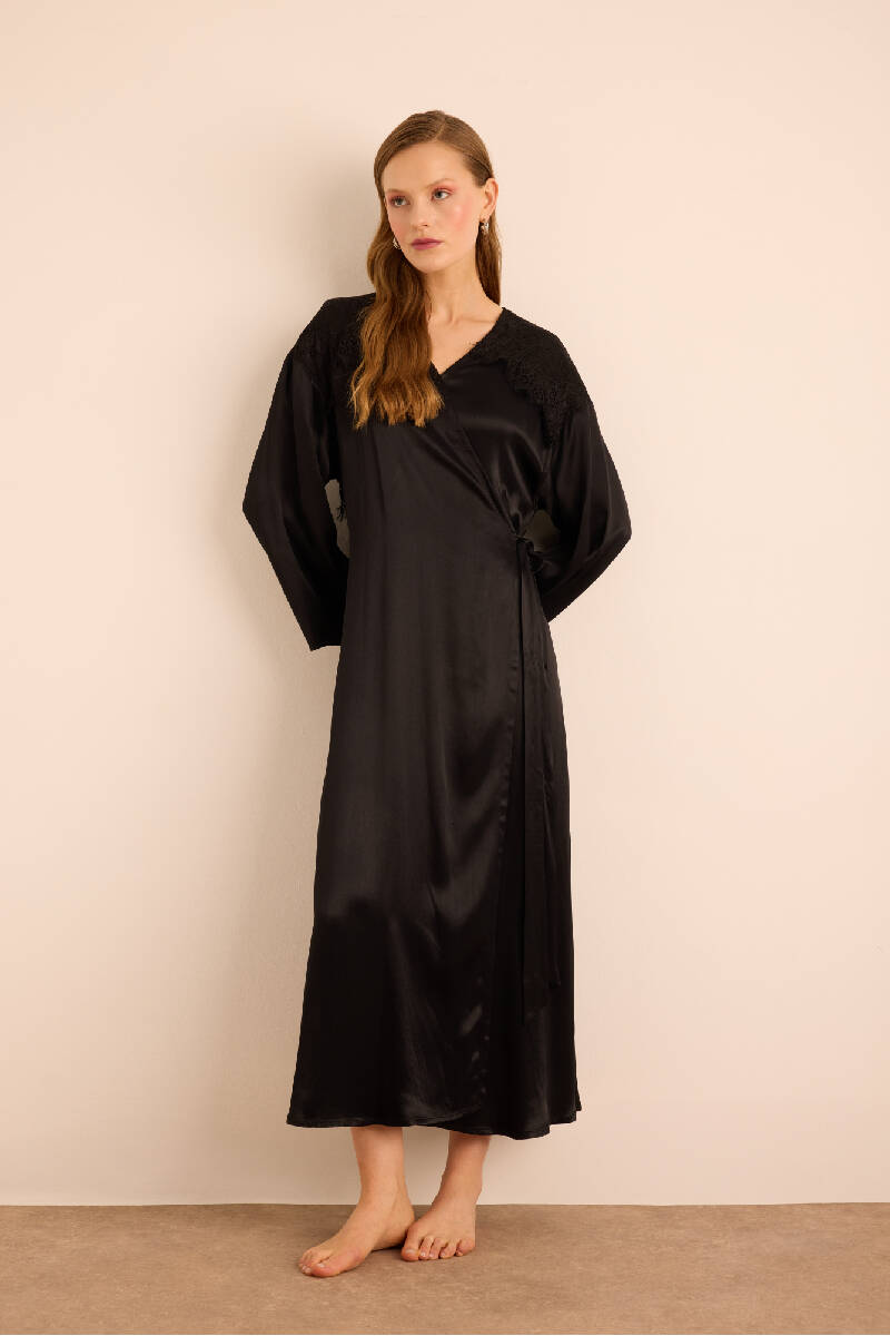 Siyah Viscon Cotton , Yandan Bağlamalı Sabahlık