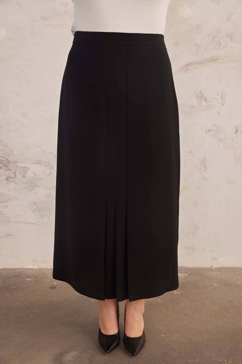 Siyah Düğme Detaylı Dar Kesim Etek