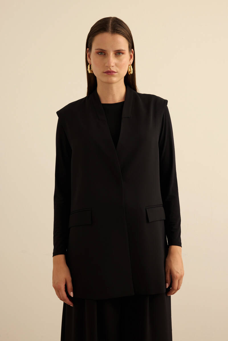 Siyah 9144111 Apolet Detaylı Yelek