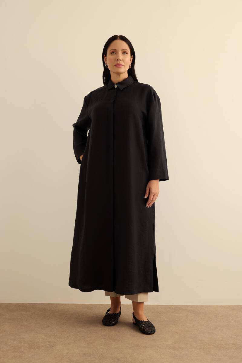 Siyah Yaka ve Kol Ucu Organze Detaylı Ferace