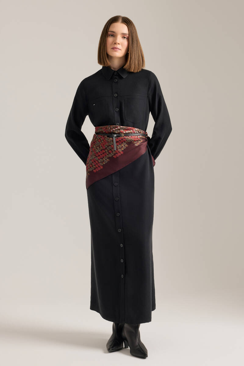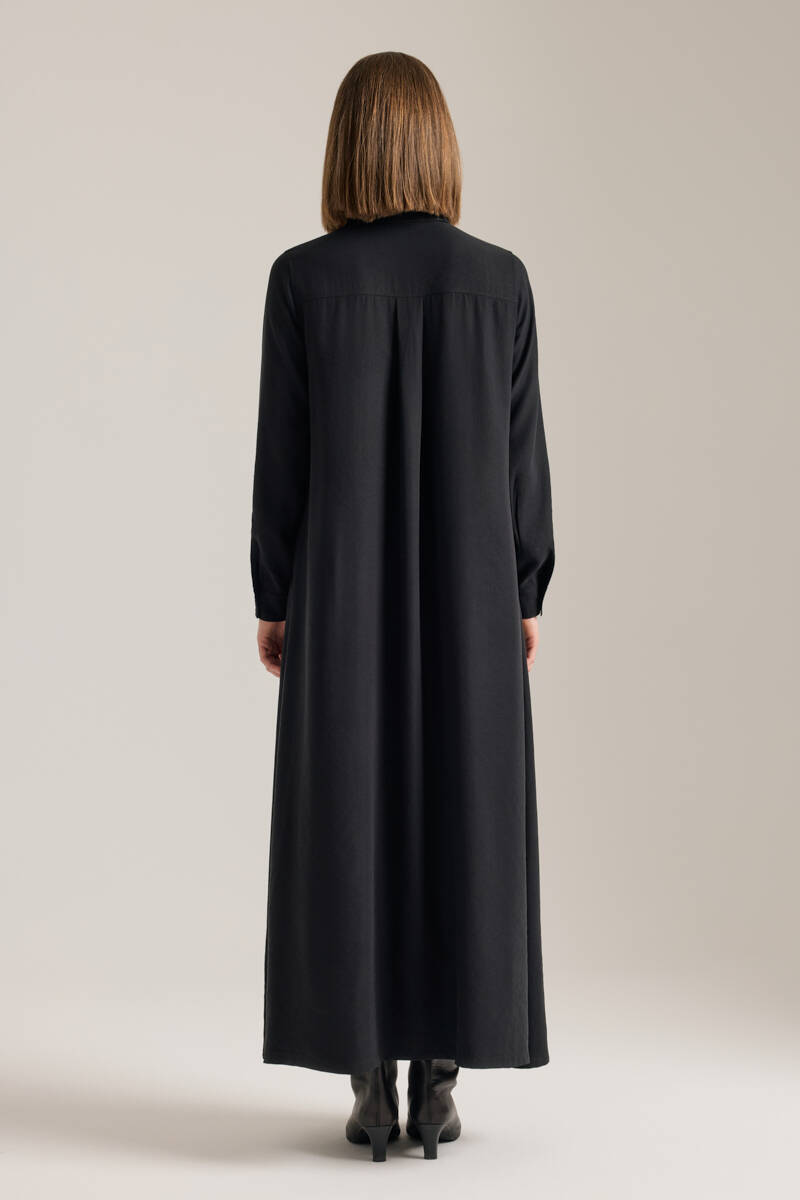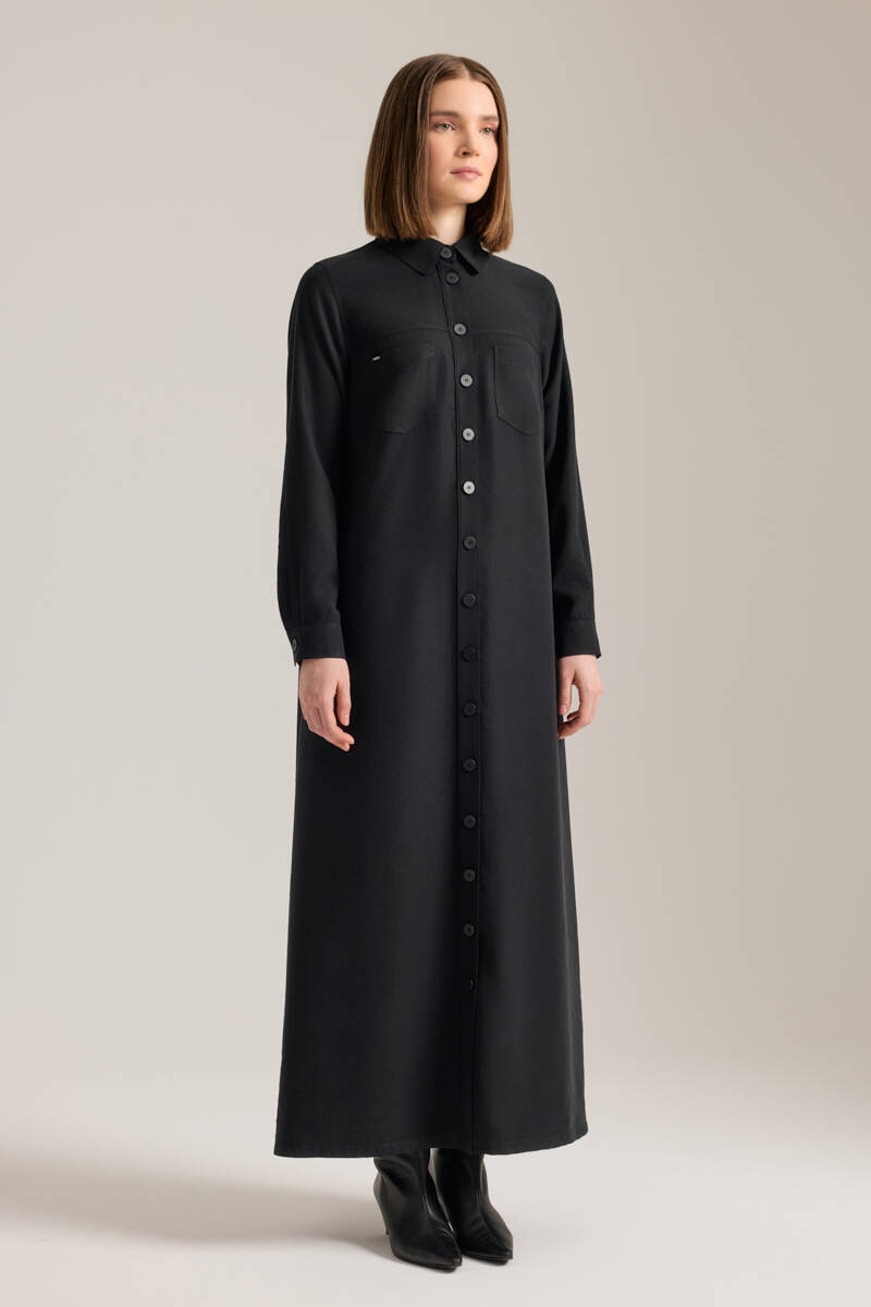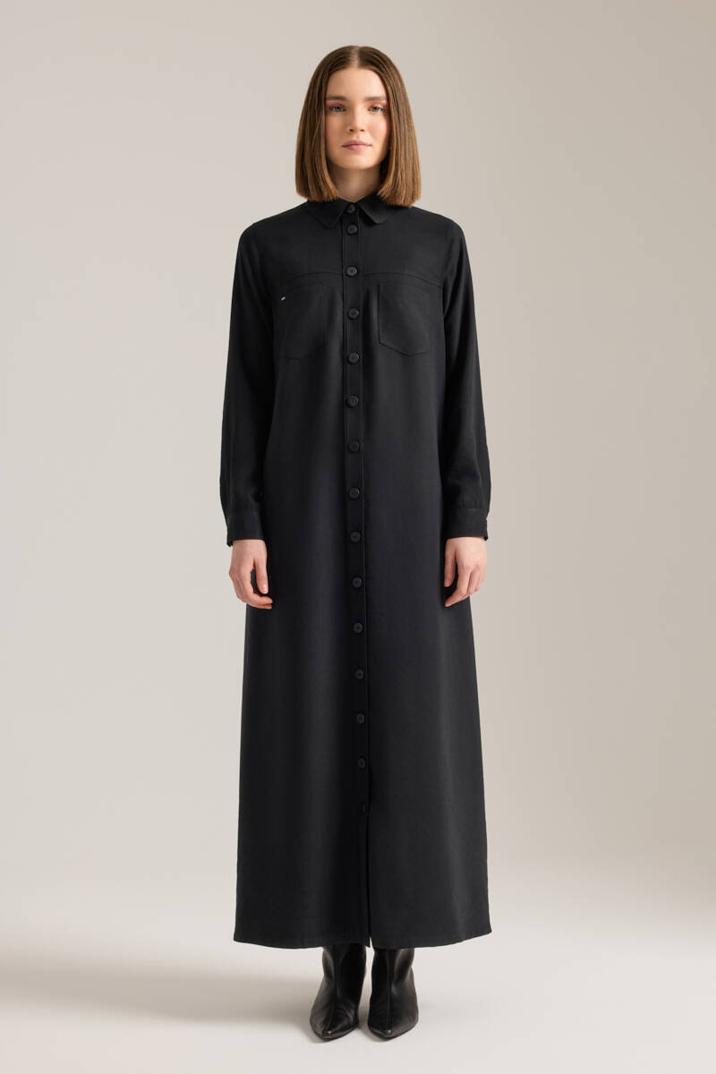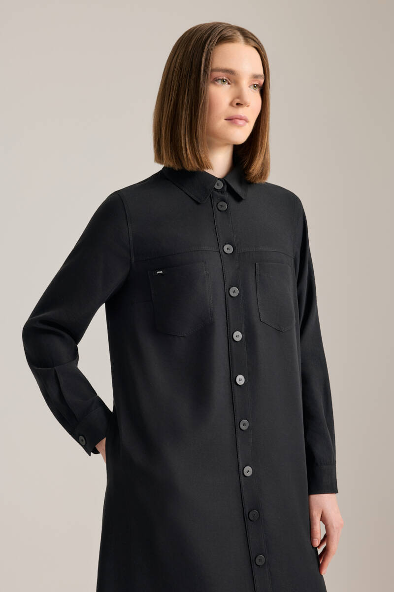 Siyah Önden Düğmeli Modal Gömlek Elbise