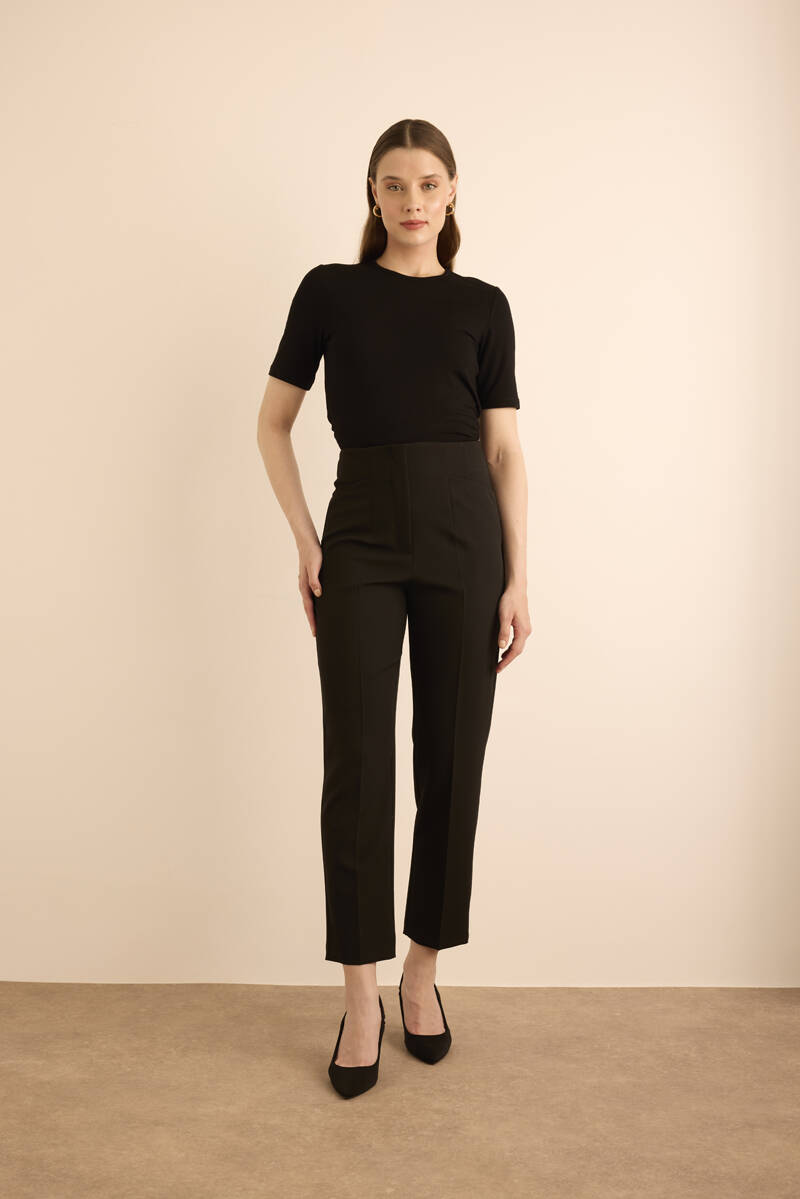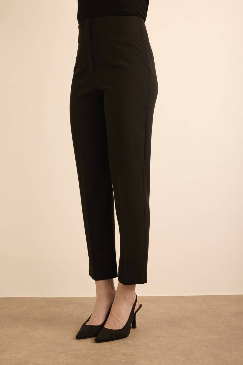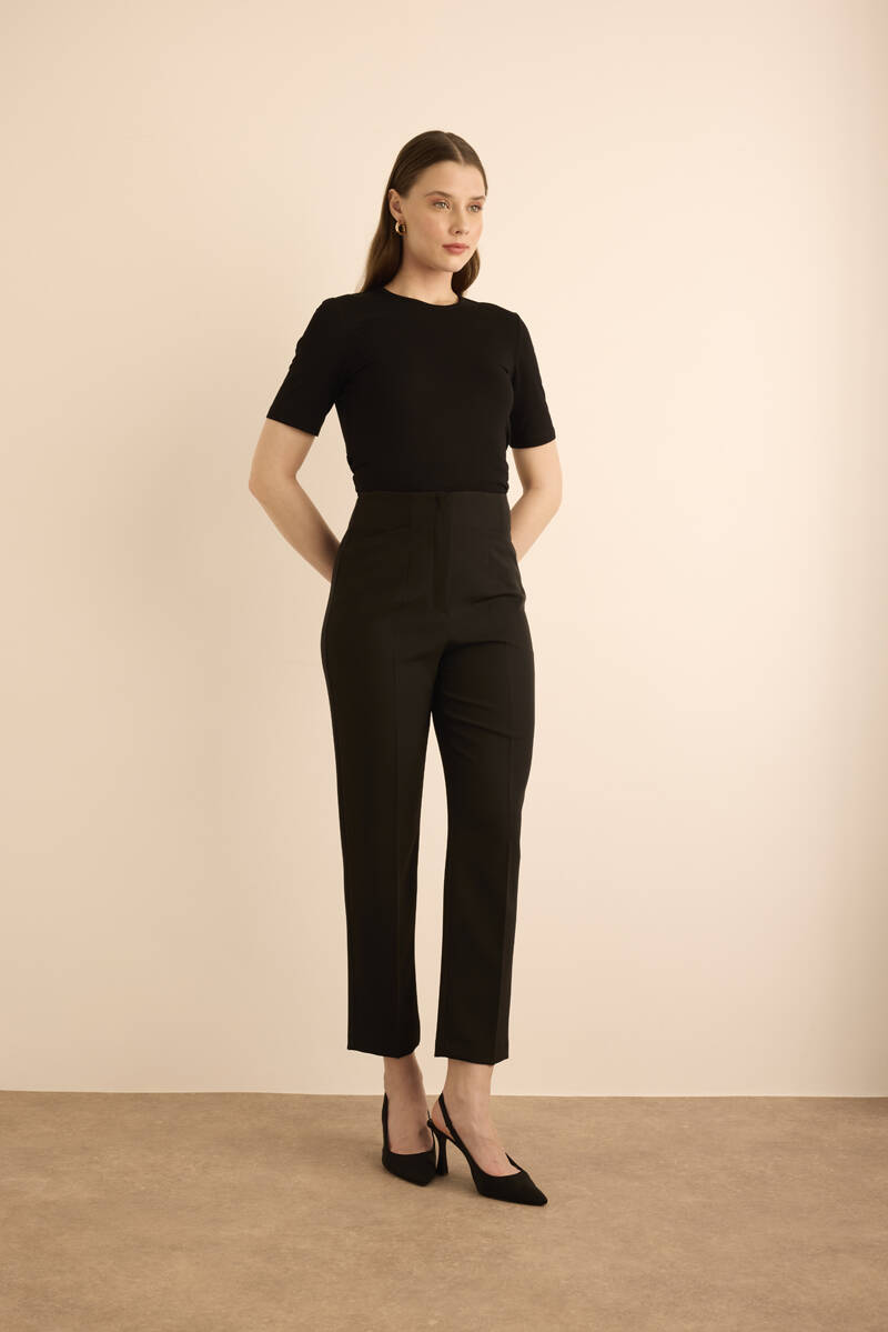 Siyah Önü Cep Detaylı Dokuma Pantolon