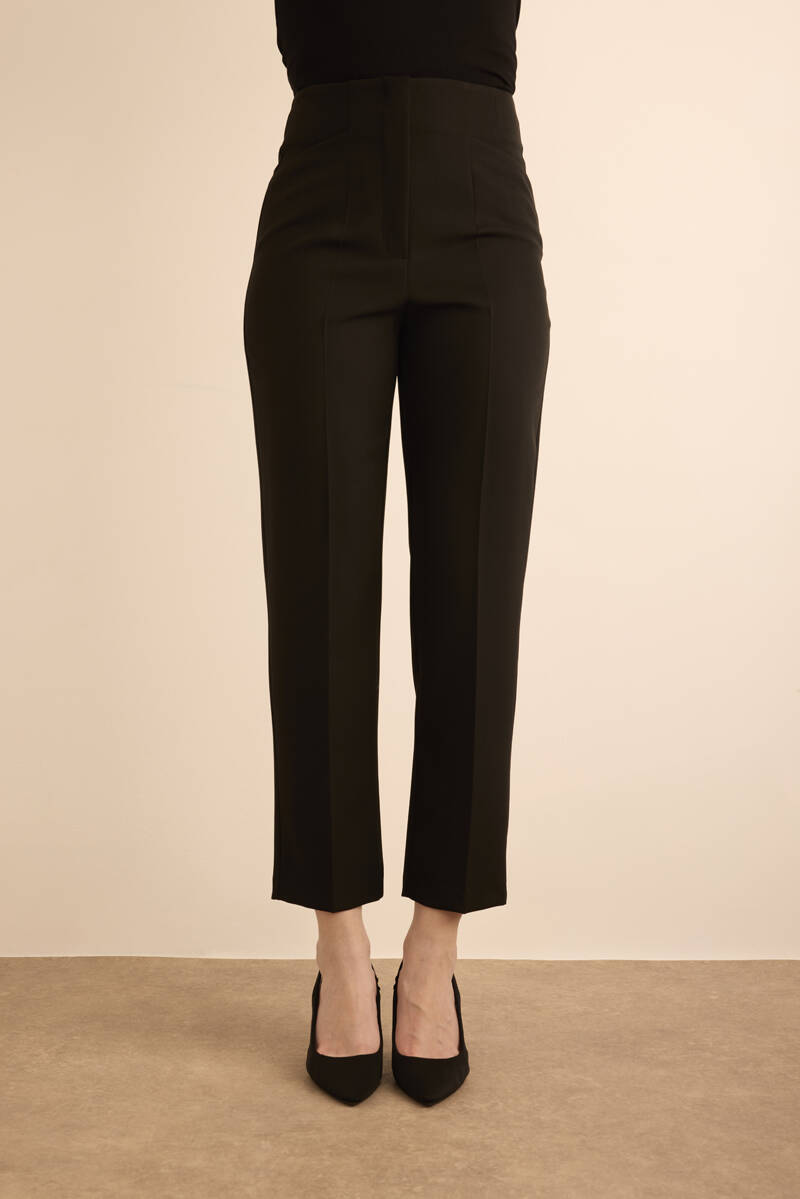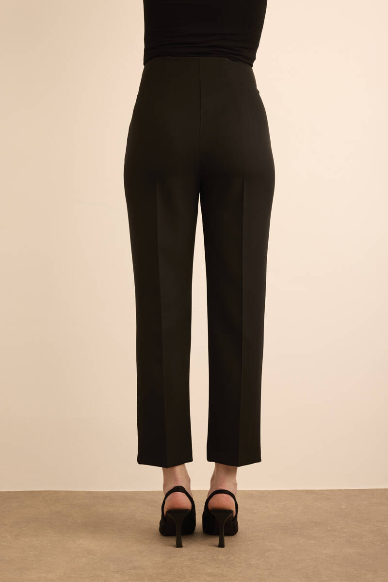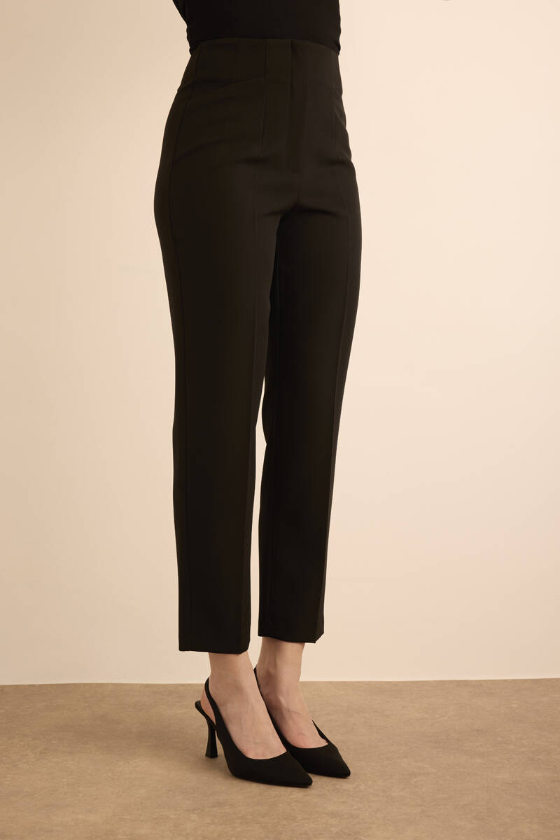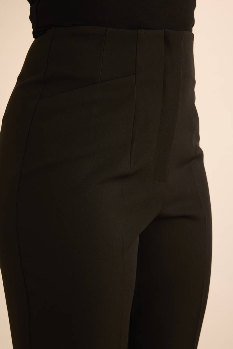 Siyah Önü Cep Detaylı Dokuma Pantolon
