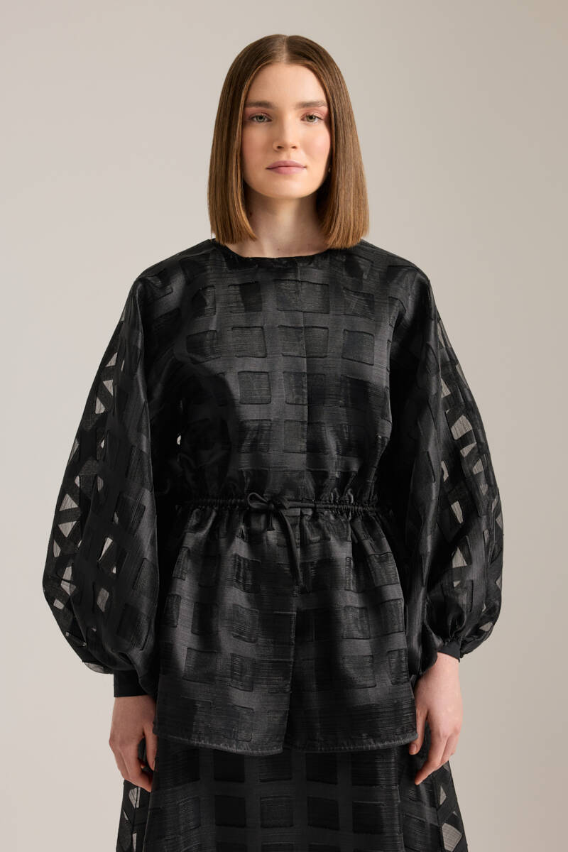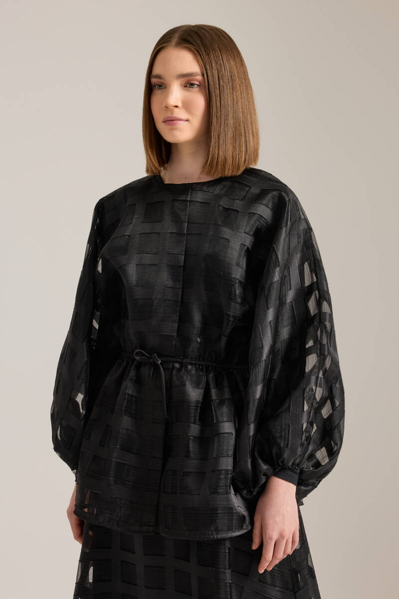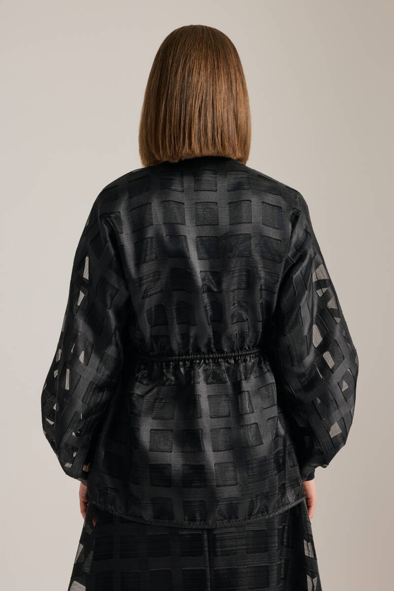 Siyah Anler Parçalı Dokuma Ceket