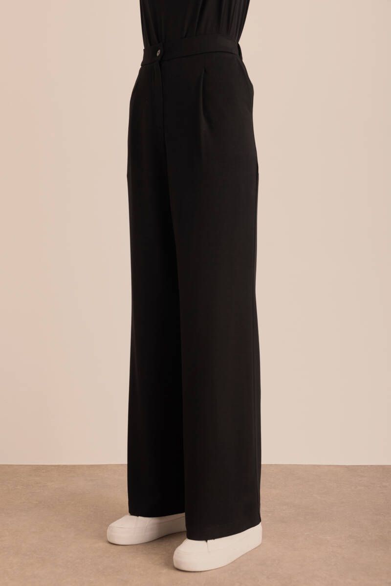 Siyah Belden Metal Toka Bağlama Detaylı Dokuma Pantolon